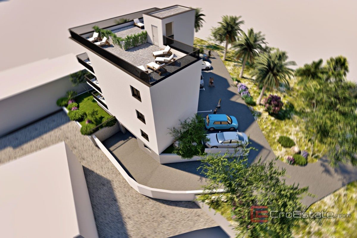 Prodává se komfortní dvoupokojový apartmán s otevřeným výhledem na moře na ostrově Čiovo, v jedné z nejatraktivnějších turistických lokalit v oblasti. K dispozici je garážové parkovací místo v suterénu budovy a venkovní parkovací místo vedle budovy. Apartmán se nachází ve druhém patře malé bytové budovy s celkem 6 apartmány.