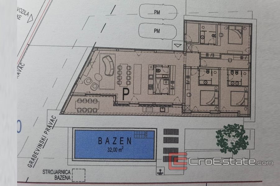 K dispozici je jednopodlažní dům s obytnou plochou 159 m2, který se nachází na pozemku 775 m2, je vzdálen 5 km od moře a 9 km od města Poreč.
