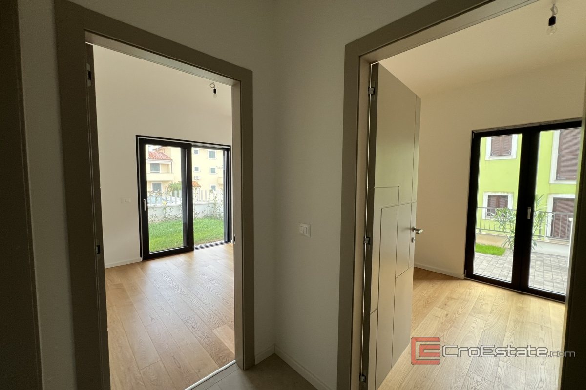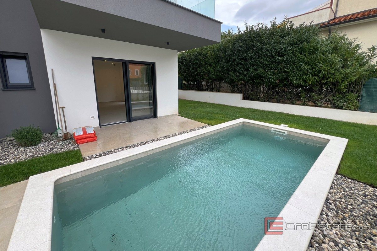 Porec - Moderní přízemní apartmán s bazénem a dvěma ložnicemi v Premantuře