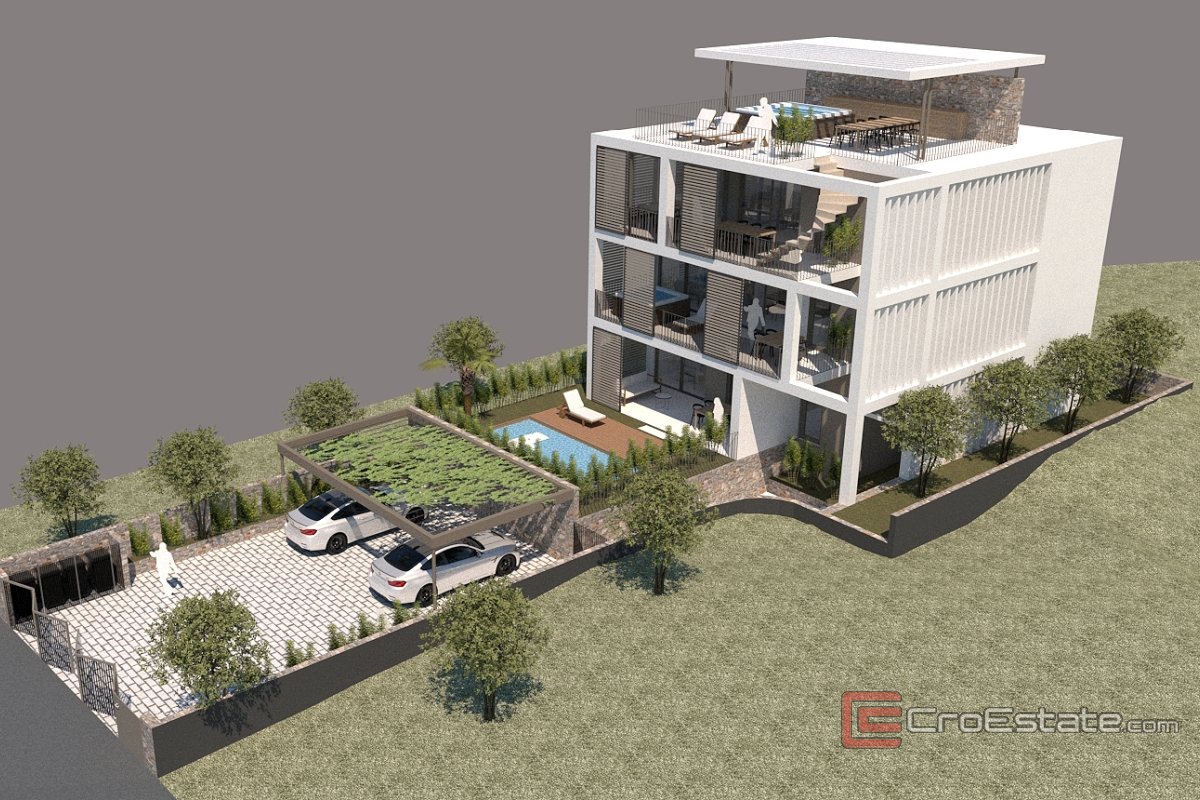 V mimořádně atraktivní poloze nad Primoštenem se nachází moderní městská vila se třemi zcela samostatnými apartmány a bazénem.