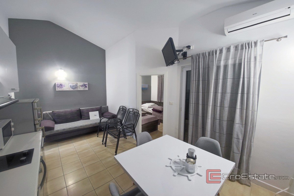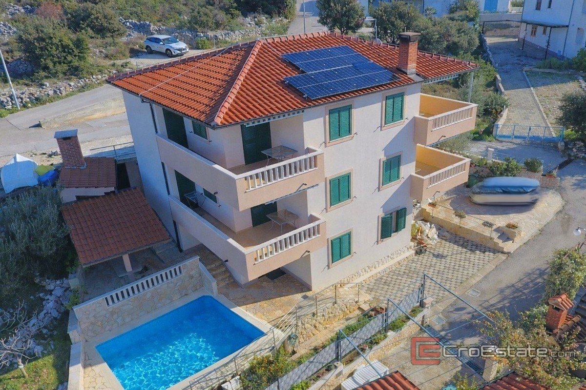 Nabízíme atraktivní apartmánový dům ve výborném stavu, který se nachází na vyvýšeném místě s krásným panoramatickým výhledem na moře a záliv. Je vzdálený pouhých 70 metrů od moře a udržované pláže s kotvištěm pro lodě, což z něj činí ideální investici k turistickému pronájmu nebo k příjemnému soukromému užívání.