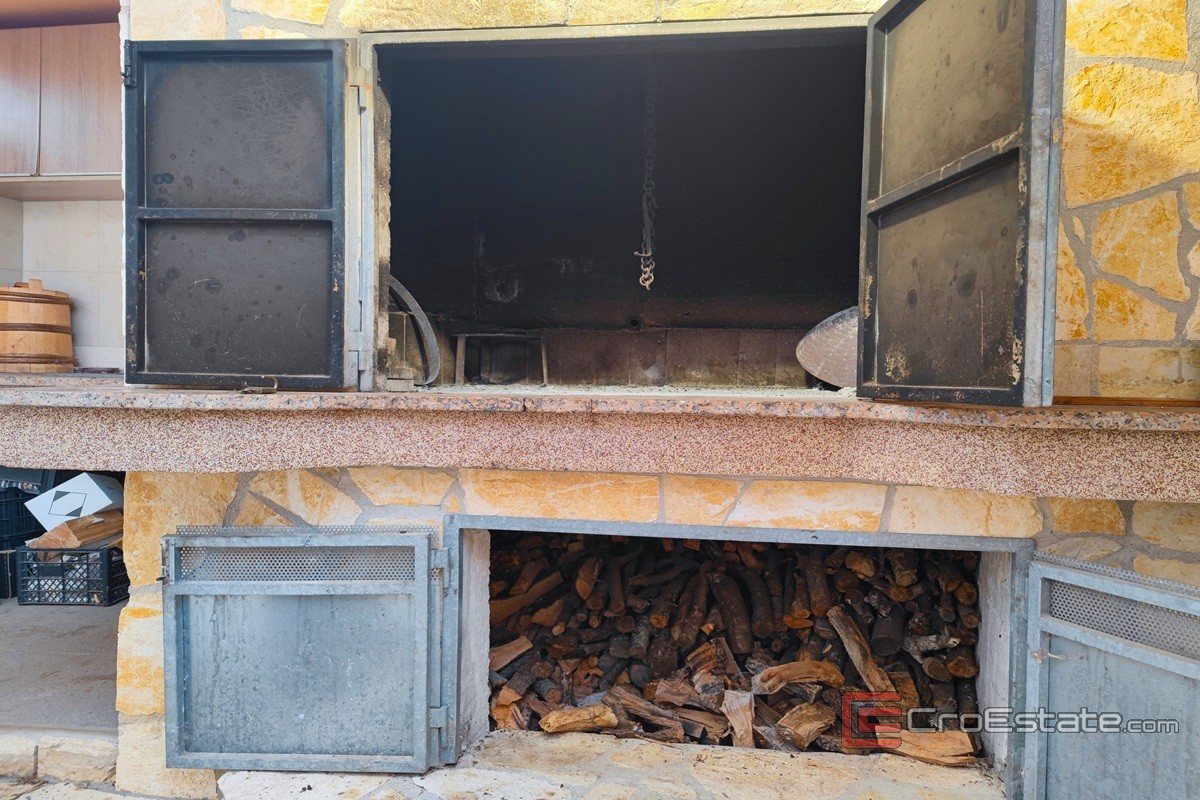 Dům je dobře postavený, úhledně udržovaný a má dostatek přirozeného světla. Díky vyvýšené poloze je zajištěno soukromí a terasy nabízejí ničím nerušený výhled na moře. V upravené zahradě se nachází bazén, taverna, velký gril s jídelním a společenským prostorem a další venkovní zařízení přizpůsobená hostům.