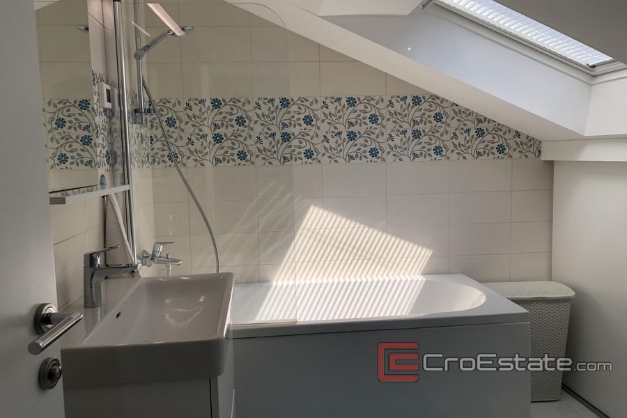 V podkroví je byt se dvěma ložnicemi. Byt se skládá ze dvou ložnic, jedné koupelny, kuchyně s jídelním koutem, obývacího pokoje s