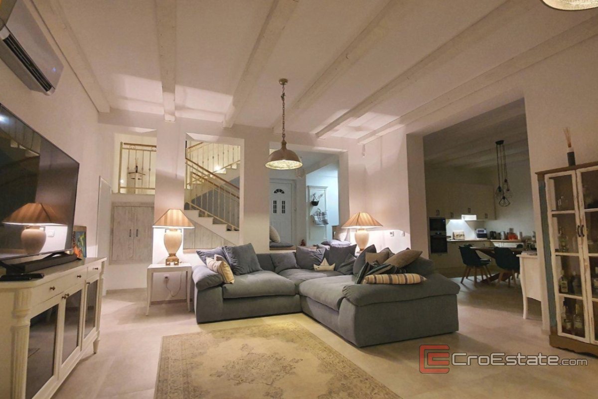 Na odlehlém místě v klidné vesnici na Šoltě, obklopená borovicemi a suchými kamennými zdmi, je na prodej krásná dvoupatrová vila s bazénem.