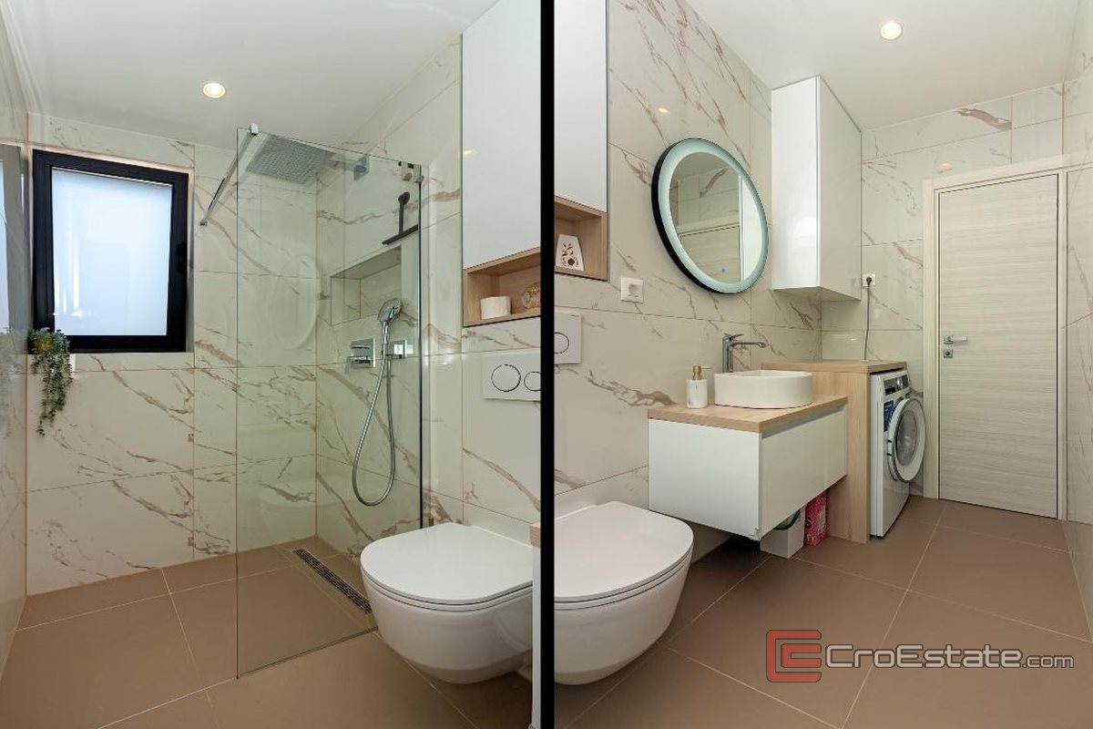 Skládá se z chodby, dvou ložnic, dvou koupelen, toalety, kuchyně a obývacího pokoje sestávajícího z jídelny a obývacího pokoje se vstupem na prostornou terasu.