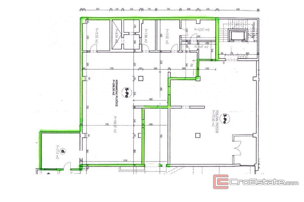 Moderní víceúčelové kancelářské prostory k pronájmu, umístěné v suterénu administrativní budovy u stadionu Poljud, o celkové ploše 442 m2.