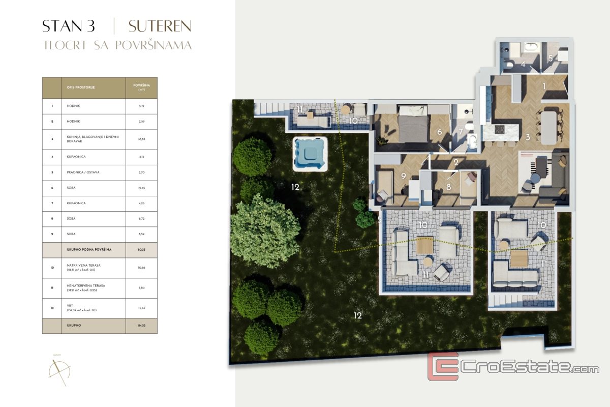 Nabízíme mimořádně atraktivní, prostorný a moderně navržený třípokojový byt nacházející se v kvalitní novostavbě, s celkovou obytnou plochou 114,53 m². Nemovitost vyniká promyšleným uspořádáním, dostatkem přirozeného světla a důrazem na pohodlí a každodenní funkčnost.