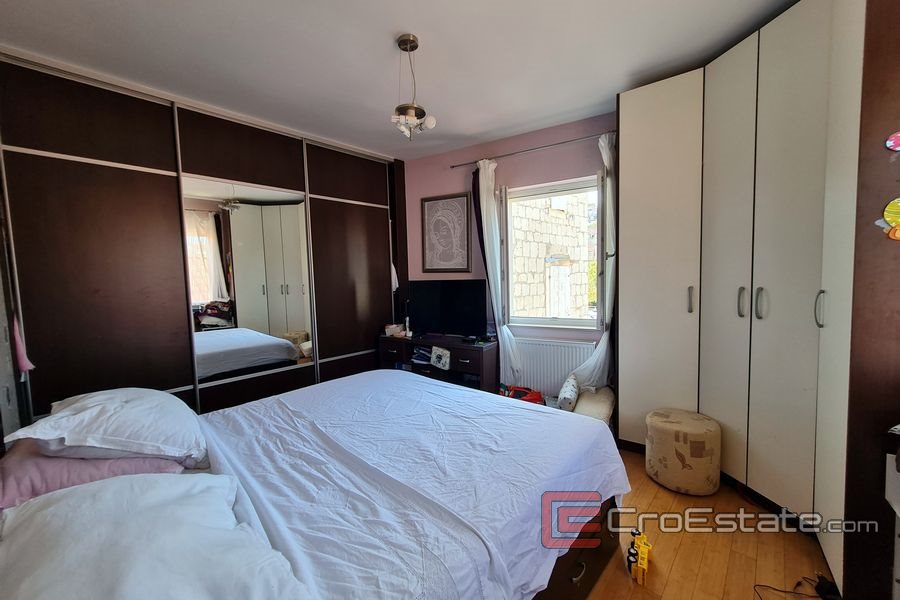 Kamenný dům s dvorem se nachází ve staré části Trogiru, ve třetí řadě k moři.