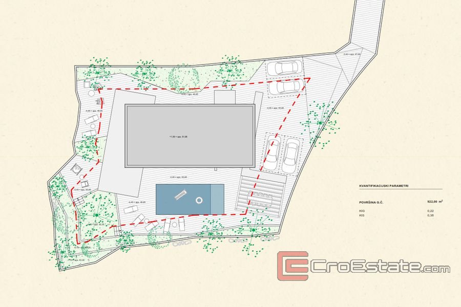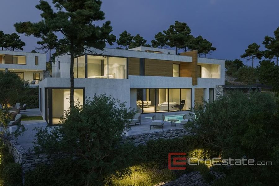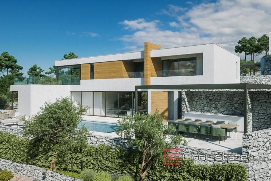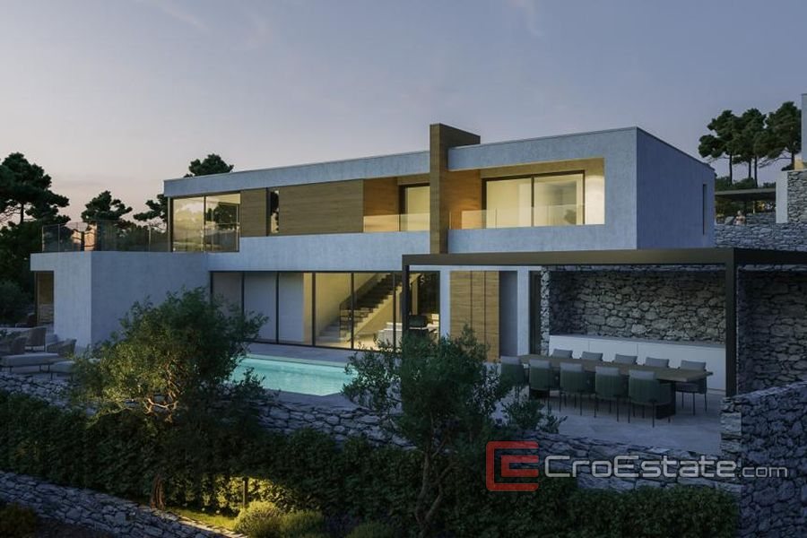 Nemovitost se nachází v komplexu se dvěma dalšími vilami na mírně svažitém pozemku, který nabízí výjimečný výhled na moře. Pozemek je 1688 m2 z toho vila zabírá 306 m2. Vila se skládá z prvního patra a přízemí, kde je letní kuchyně, sprcha, bazén a prostorná terasa, která je částečně krytá. Vily mají společnou příjezdovou cestu k vlastnímu vchodu a garáži.