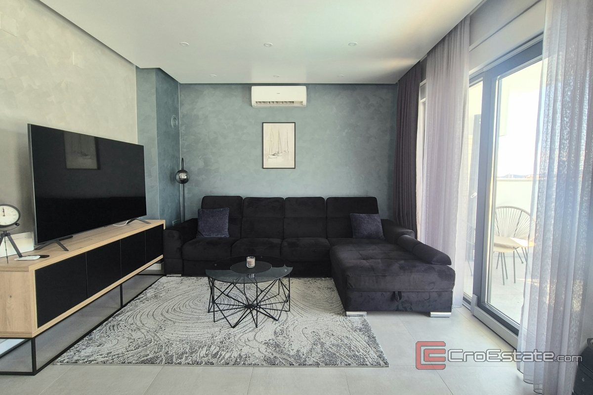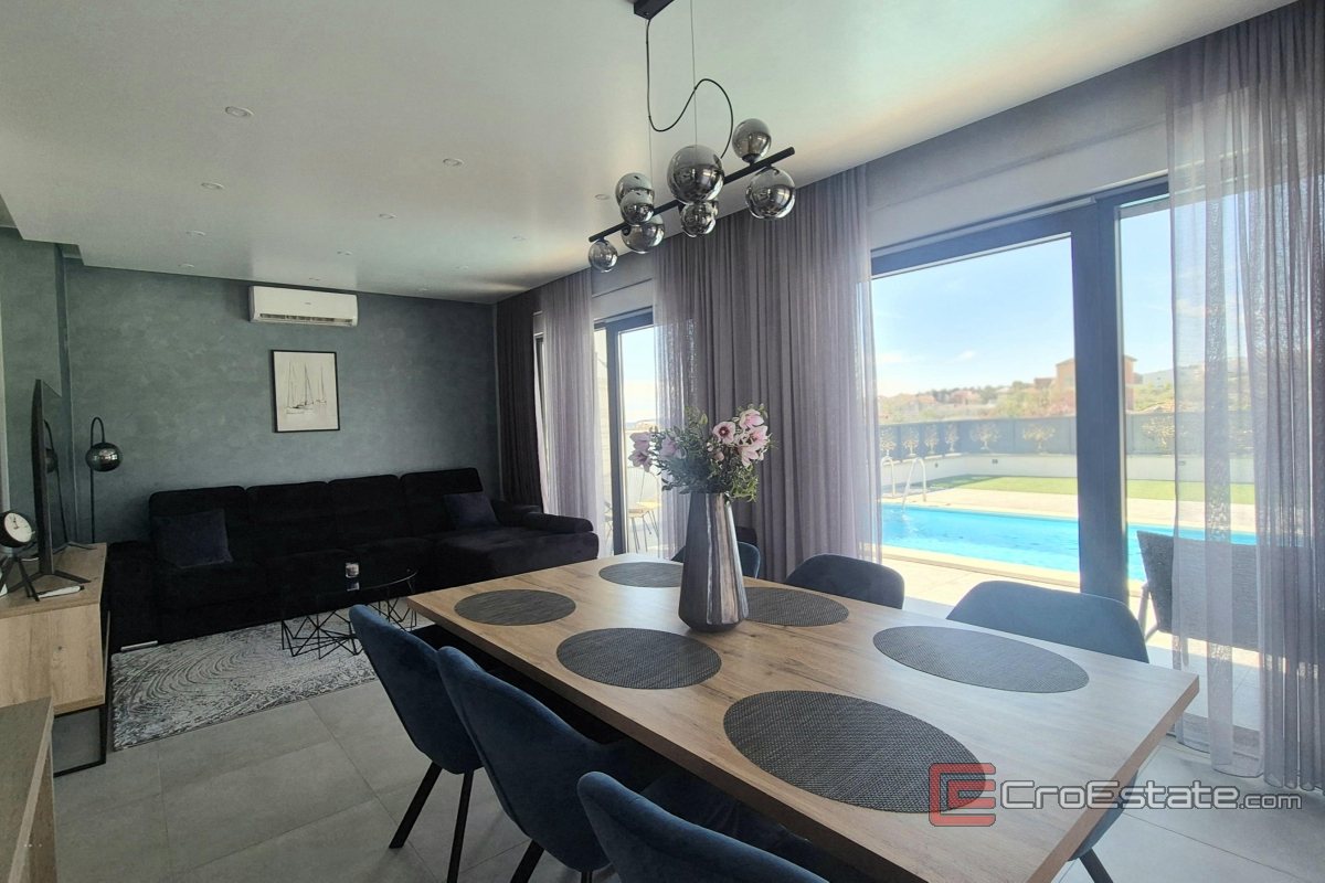 Dům s bazénem je na prodej ve Vodicích v klidné lokalitě, přibližně 1200 m od moře. Jedná se o dvojdomek (duplex), moderně zařízený a připravený k nastěhování.