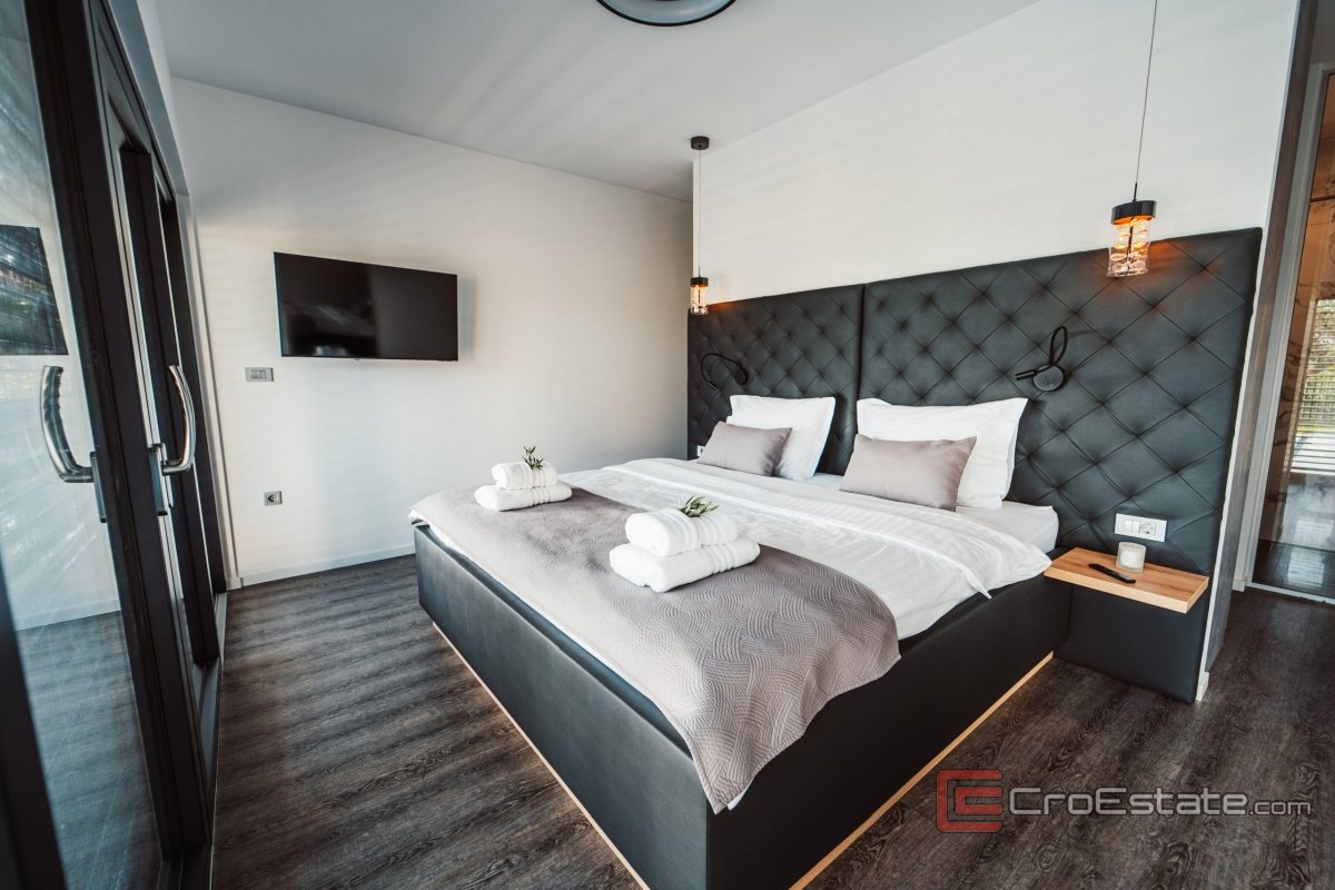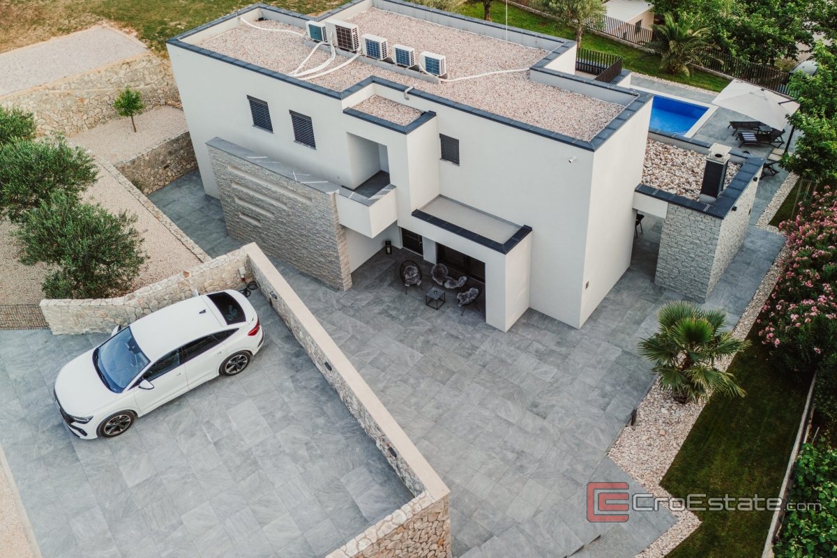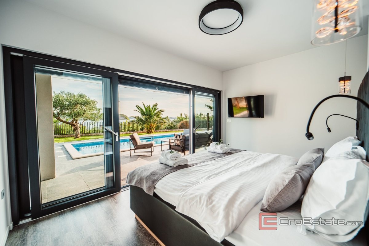 Tato moderní středomořská oáza se nachází pouhých 100 metrů od moře, obklopena olivovníky, palmami a dalšími typickými dalmatskými rostlinami. Na pozemku o rozloze 945 m² se nachází luxusní vila s vyhřívaným bazénem, venkovní kuchyní, saunou a soukromým parkováním.