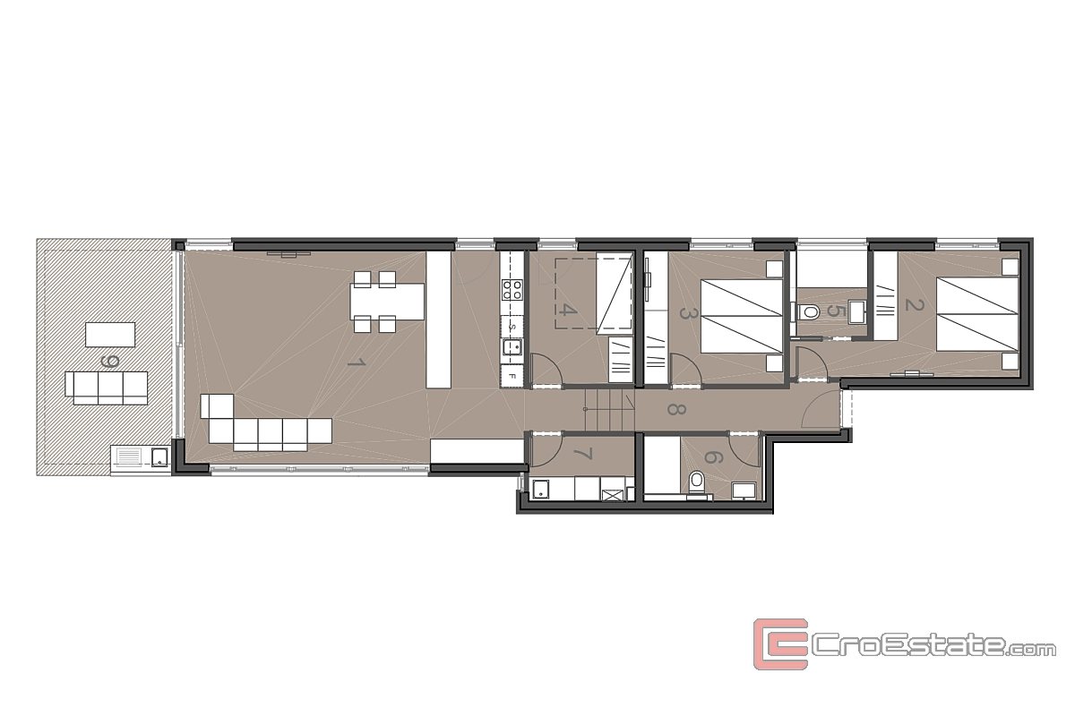 V atraktivní lokalitě v bezprostřední blízkosti Zadaru je na prodej luxusní apartmán v moderně řešené novostavbě, necelých 100 metrů od moře. Byt se nachází v prvním patře menšího bytového domu s výtahem a v ceně jsou dvě parkovací stání - jedno v garáži a jedno venku.