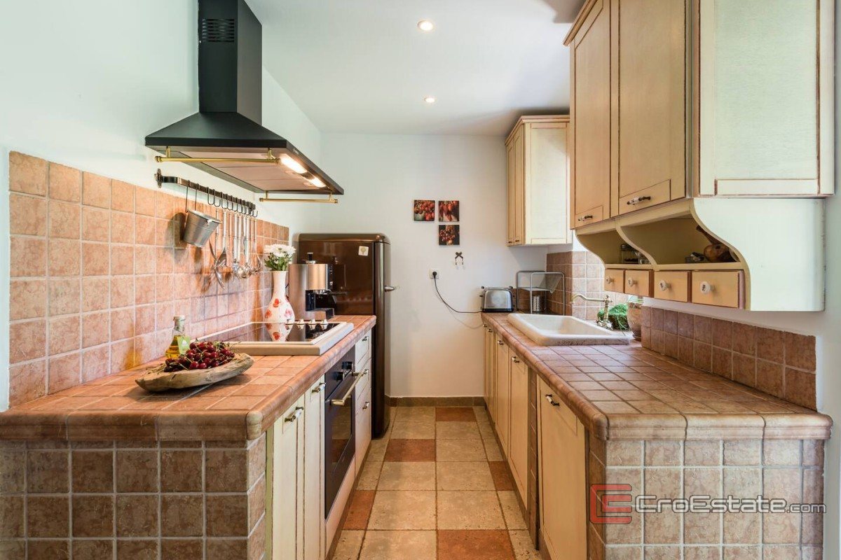 Nieruchomość została gruntownie odnowiona w 2005 roku, a następnie dodatkowo odświeżona w 2020 roku. Jest w pełni funkcjonalna i nadaje się do natychmiastowego zamieszkania, bez konieczności dodatkowych inwestycji. Zewnętrzna część nieruchomości została zaprojektowana jako przestrzeń do pełnego relaksu i przyjemności. Na terenie znajduje się zadaszony i otwarty taras, zadaszony grill, pomieszczenie gospodarcze oraz basen o wymiarach 6 × 3 m. Do dyspozycji są również dwa miejsca parkingowe. Na działce rośnie również 15 drzew oliwnych.