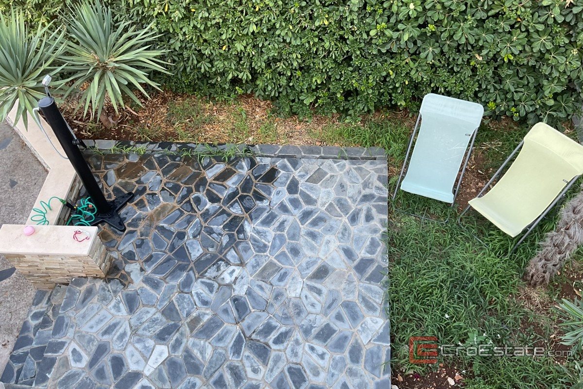 Ogród jest zagospodarowany i prywatny, z zewnętrzną strefą relaksu i prysznicem, tworząc wrażenie małego śródziemnomorskiego raju. Garaż i tawerna z toaletą stanowią dodatkową wartość, a stolarka PCV, ogrodzenie ze stali nierdzewnej, termoizolacyjna fasada, klimatyzacja i piec opalany drewnem gwarantują komfort i funkcjonalność przez cały rok.