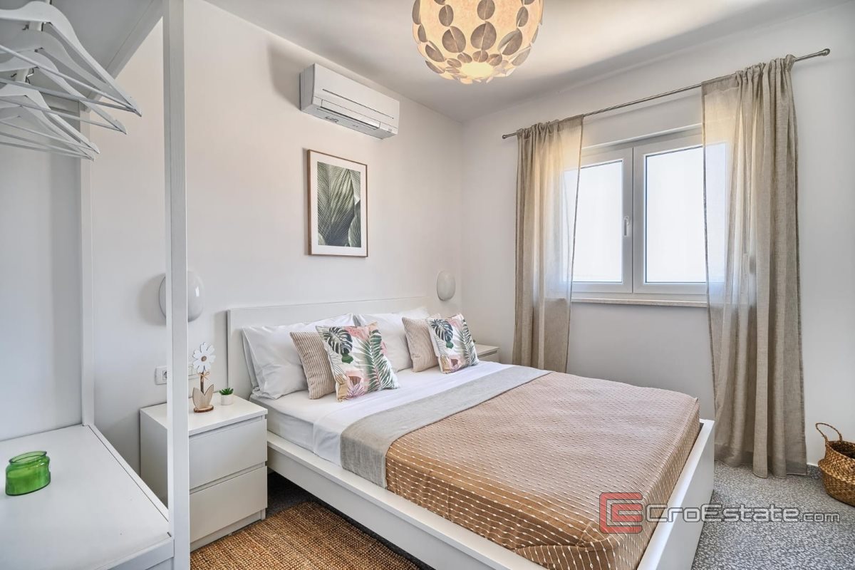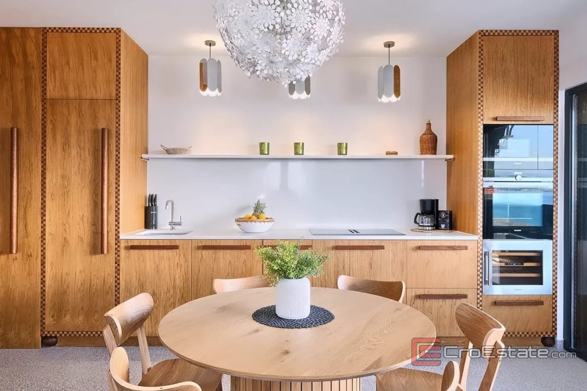 Elegancki i nowoczesny apartament z panoramicznym widokiem na morze i basenem, położony na północnej stronie wyspy Čiovo, na 2. piętrze nowo wybudowanego budynku z zaledwie sześcioma apartamentami.