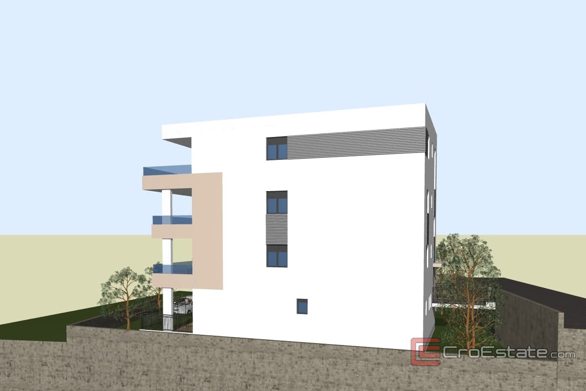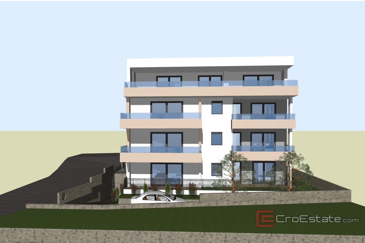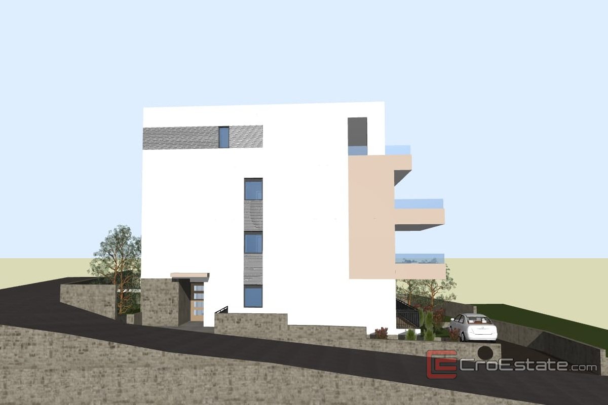 Na sprzedaż jest penthouse z widokiem na morze, położony na trzecim piętrze nowego budynku. Całkowita powierzchnia netto apartamentu wynosi 159,8 m², a układ wnętrza obejmuje trzy sypialnie, salon, jadalnię, kuchnię, dwie łazienki i loggię.
