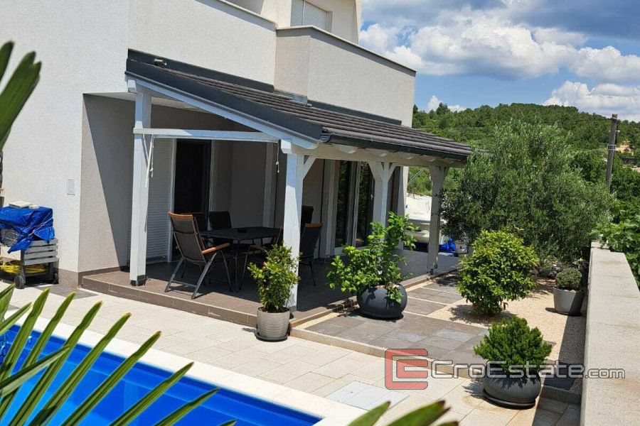 Murter - Nowoczesny dom w zabudowie bliźniaczej z widokiem na morze