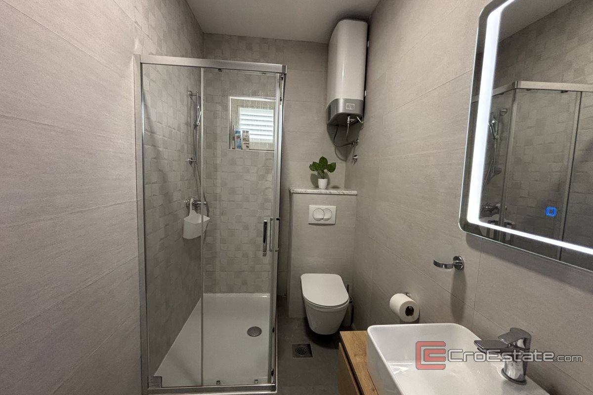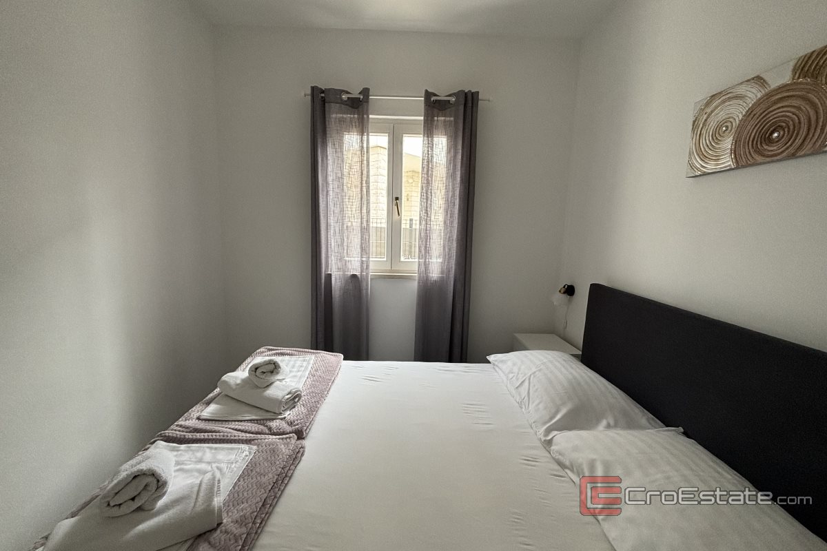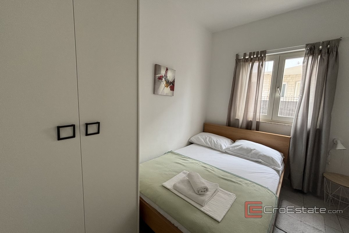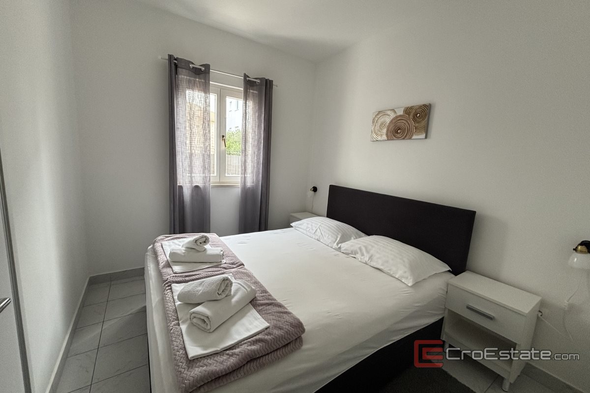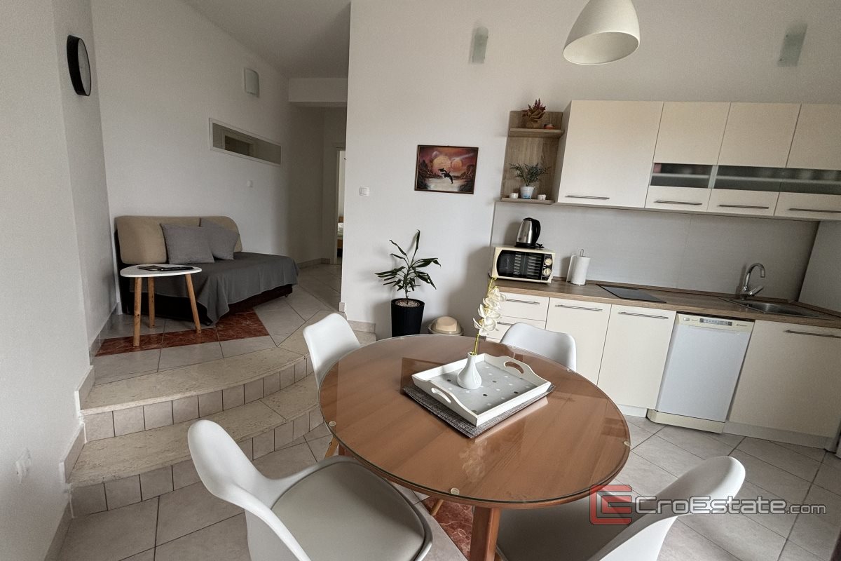 Ma 75,52 m² i składa się z dwóch korytarzy, przedpokoju, dwóch łazienek, trzech sypialni i dwóch kuchni z jadalnią i salonu, a także ma dwa sąsiadujące tarasy o powierzchni 29,94 m². Największą zaletą apartamentu jest możliwość krótkoterminowego wynajmu turystom ze względu na jego położenie nad morzem. Apartament jest sprzedawany umeblowany i wyposażony, a ogrzewanie i chłodzenie zapewniają dwie klimatyzatory. Przed budynkiem znajdują się dwa zewnętrzne miejsca parkingowe, które należą do apartamentu.