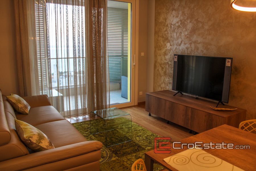 Do wynajęcia jest nowoczesny i luksusowo urządzony apartament z otwartym widokiem na morze i wyspy. Mieszkanie znajduje się na piętrze wieżowca znajdującego się w dzielnicy Trstenik w Splicie.