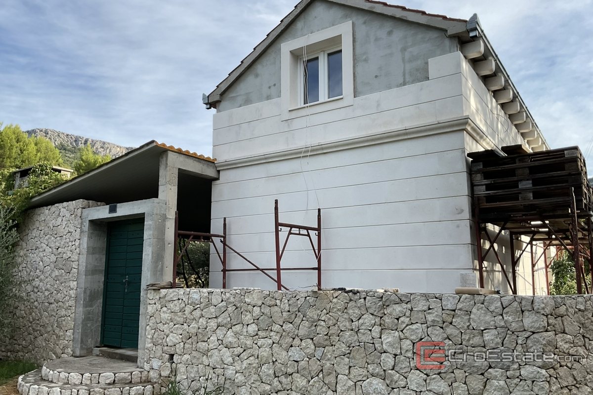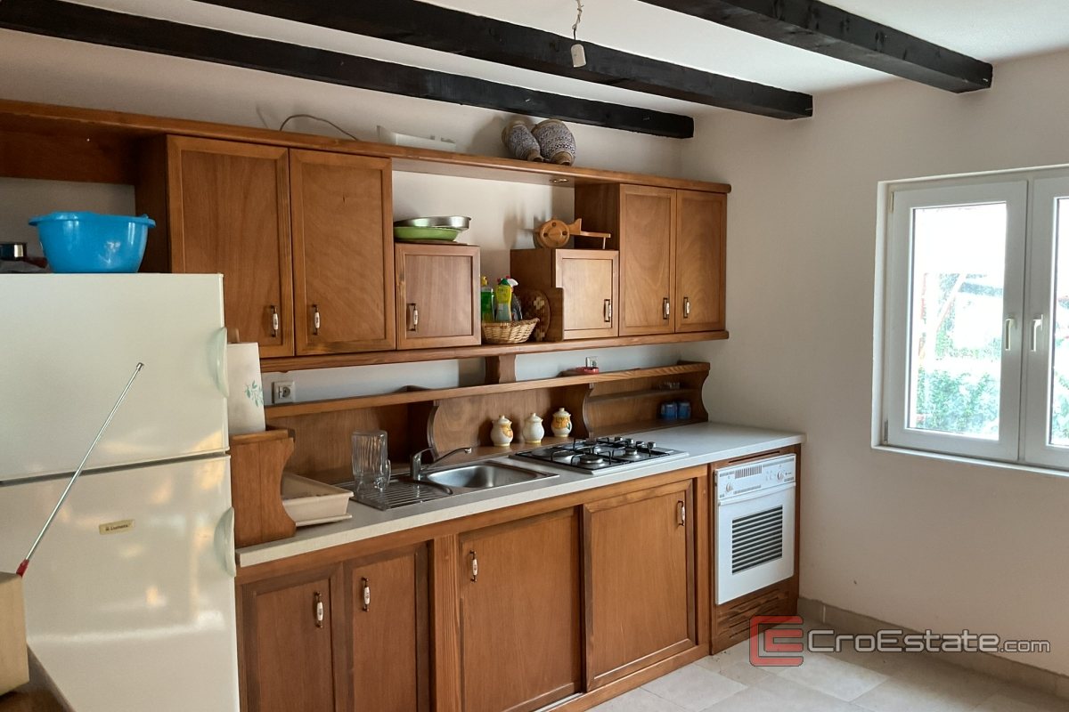 Przestrzeń mieszkalna o powierzchni 123 m² została starannie urządzona i oferuje idealną równowagę między funkcjonalnością a estetyką. Trzy jasne i niedawno odnowione sypialnie wyposażone są w wbudowane szafy, a dwie nowoczesne łazienki z kabinami prysznicowymi zapewniają pełen komfort. Kuchnia jest w pełni wyposażona, a ogrzewanie pelletowe i przygotowana klimatyzacja we wszystkich pomieszczeniach zapewniają przyjemny pobyt przez cały rok. Kamienna fasada domu, podkreślająca autentyczny dalmatyński styl i długotrwałą wartość, jest obecnie w końcowej fazie budowy.