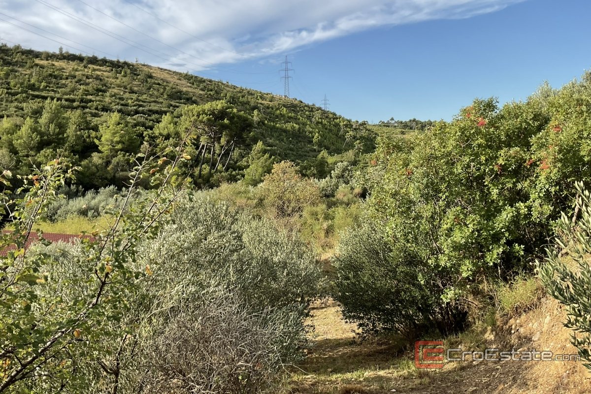 Dziób o powierzchni 2000 m² to prawdziwy raj dla miłośników natury i drzew oliwnych. Kaskadowe ogrody z pięćdziesięcioma drzewami oliwnymi, duży taras z możliwością budowy basenu oraz taras z kominkiem zewnętrznym stanowią idealne miejsce do cieszenia się naturą. Kamienne mury otaczające działkę zapewniają prywatność, a dodatkowy budynek o powierzchni około 100 m² służy obecnie jako pomieszczenie gospodarcze, ale może zostać przekształcony. W ogrodzie powstaje kamienna tawerna, idealna na spotkania towarzyskie lub jako przyszłe miejsce uprawy winorośli.