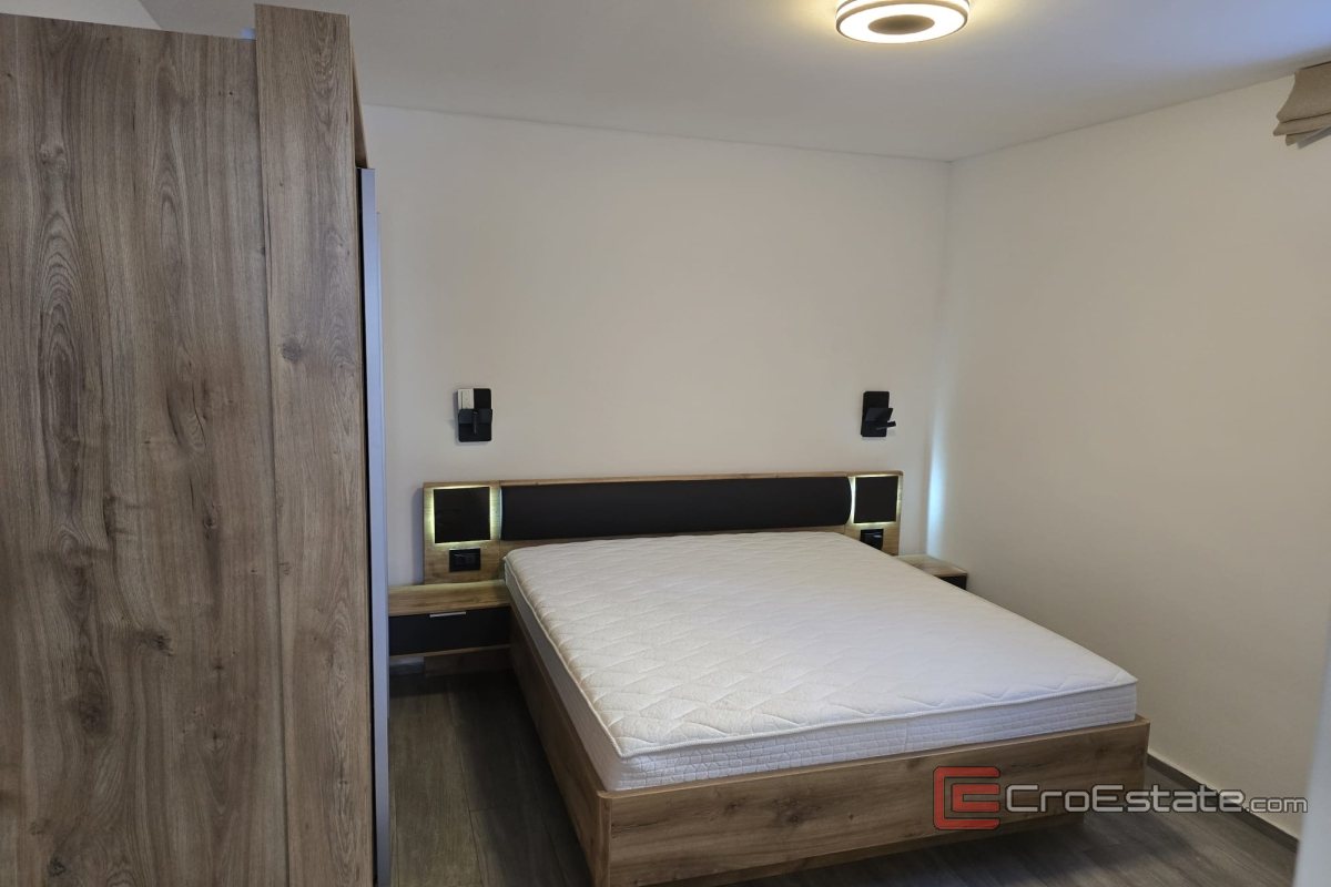 Przestrzeń składa się z salonu połączonego z kuchnią i jadalnią, dwóch sypialni oraz dwóch nowoczesnych łazienek z ogrzewaniem podłogowym. Apartament jest klimatyzowany we wszystkich pomieszczeniach, umeblowany i gotowy do zamieszkania, a w cenę wliczone jest jedno miejsce parkingowe na zewnątrz.