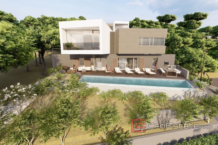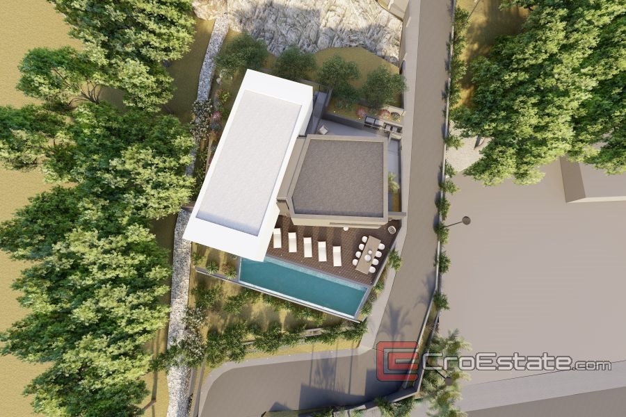 Na sprzedaż jest willa w budowie w Trogirze, w odległości zaledwie 280 m od morza. Znajduje się od strony południowej i ma otwarty widok na morze i wyspę Čiovo. Będzie otoczony podobnymi obiektami i został zaprojektowany tak, aby jak najwięcej pokoi było skierowanych na południe, z widokiem na morze.