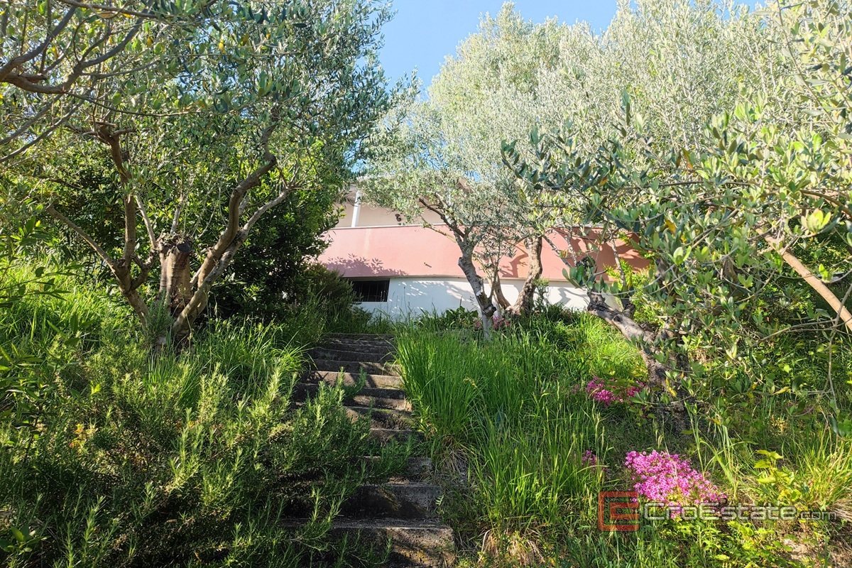 Dom ten oferuje zachwycający widok na morze i jest idealnym miejscem na spokojne życie lub jako atrakcyjna inwestycja dla osób planujących inwestować w turystykę. Powierzchnia mieszkalna wynosi 75 m², a całość znajduje się na przestronnej działce o powierzchni 935 m², otoczonej bujną śródziemnomorską roślinnością, w tym 40 drzewami oliwnymi z pełnymi owocami, co dodatkowo przyczynia się do autentycznej śródziemnomorskiej atmosfery.