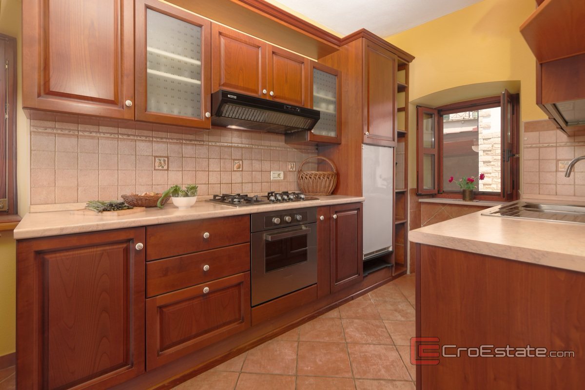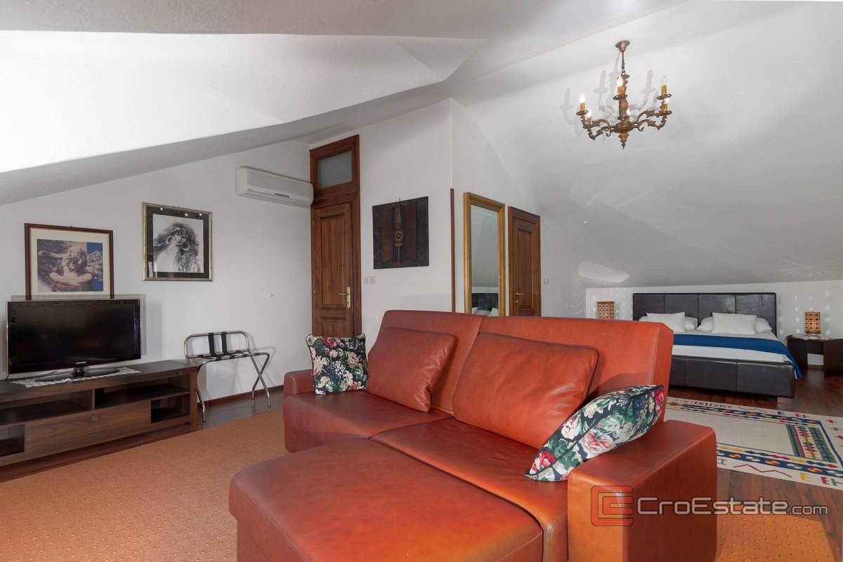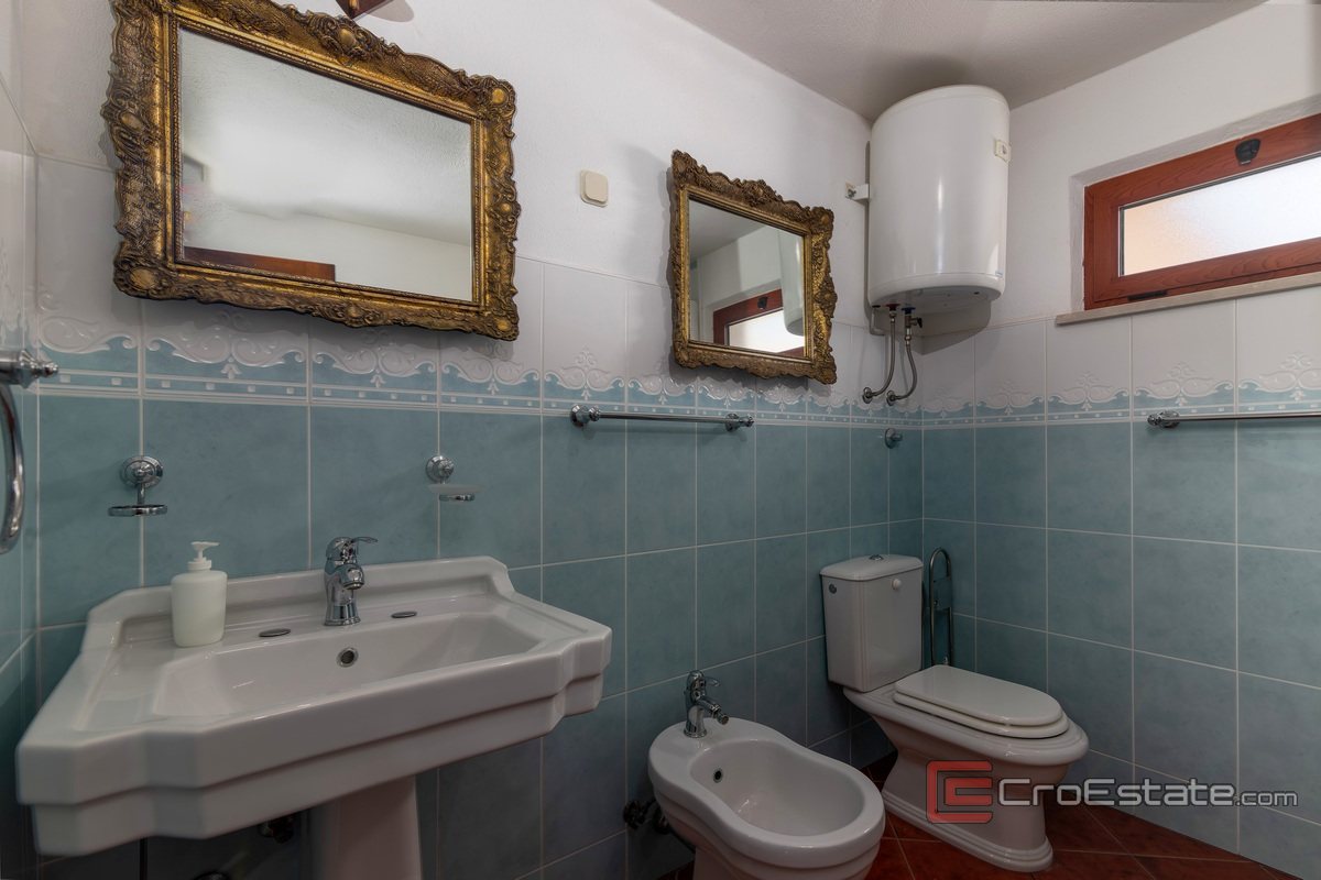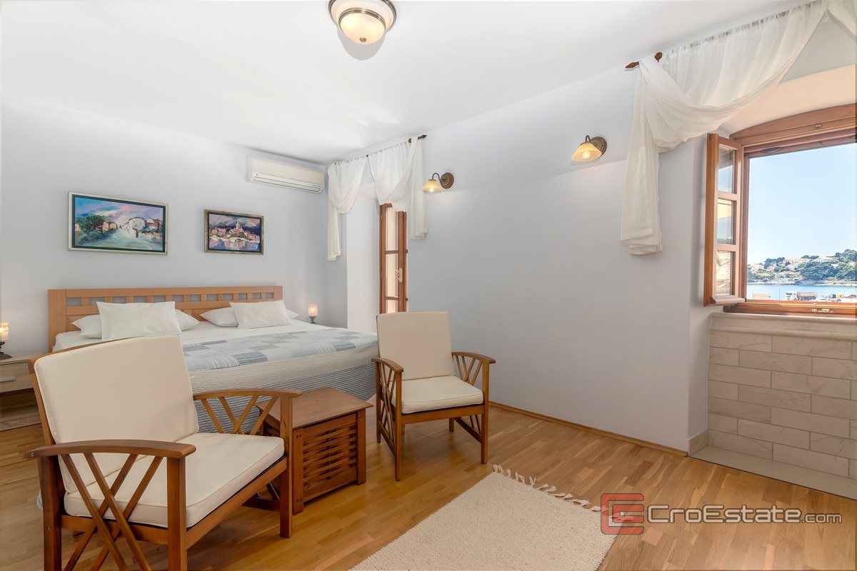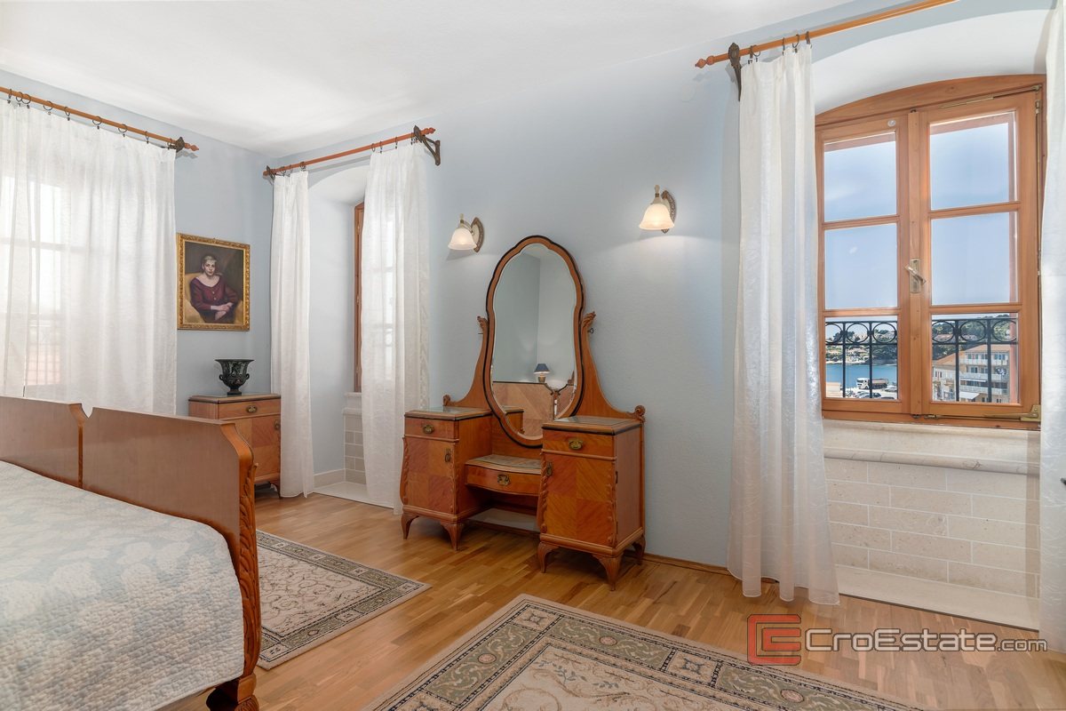 On a 787 m² plot, this 550 m² large house offers two separate residential units connected by a corridor, ideally designed for privacy and a comfortable stay. The first unit consists of a renovated stone house on four floors, with a spacious kitchen with a large storage room and an open-plan dining room on the ground floor, an elegant living room with an attached bathroom and a terrace with a view of the sea. On the first floor, there is a two-room apartment with its own living room, kitchen, bathroom and adjoining terrace. The second two-story apartment, with direct access to the south-facing terrace, offers a separate living room and kitchen and toilet on the lower floor, and a spacious bathroom, bedroom and relaxation room with panoramic views on the upper floor. The upper floor is connected to another two-story apartment located on the east side of the house, which consists of a large hall, two bathrooms, and three bedrooms (one on the east, the second on the south, and the third on the last floor of the house - the attic - with a private bathroom ). The second and third bedrooms have an open view of the sea.