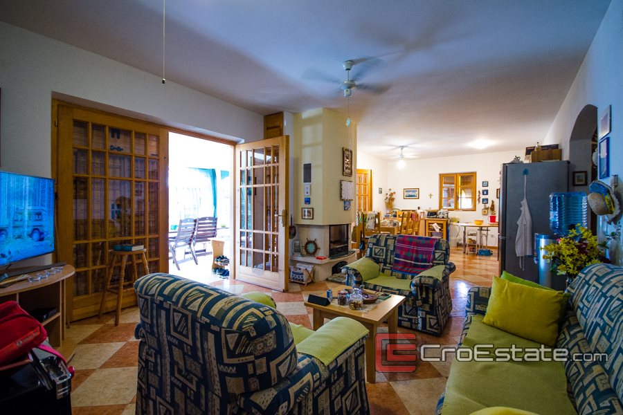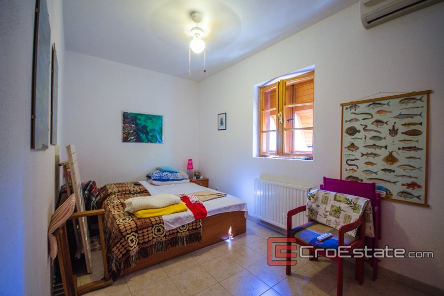 House in the second row to the sea, positioned in a quieter part of the island of Brač. It has an open view of the sea and excellent access to the sea and a pier in front of the house where a boat can be moored.