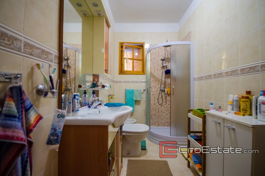 The ground floor consists of a studio apartment that can be converted into a garage if necessary, while on the upper floor there is a bathroom, three bedrooms, a hallway and a larger living room with a kitchen and a dining room that leads to a spacious and large covered terrace with a total area of 50 m2. .