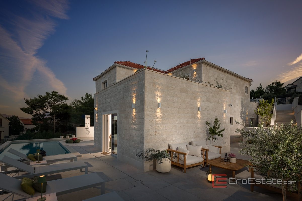 For sale is a stone villa with a total living area of 150 m2 on the island of Brač on a plot of land of 365 m2.