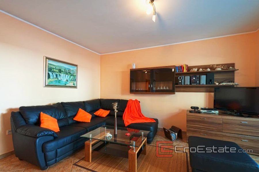 On the ground floor there is a large living room, two bedrooms, two bathrooms, kitchen, hallway and storage room. Immediately after the exit to the yard, there is a large swimming pool (7 m x 3 m) and a barbecue with space for a table and chairs. On the second floor, there are 3 rooms, each room has a separate bathroom and access to a separate terrace with a wonderful view of the sea, living room, kitchen and dining room.