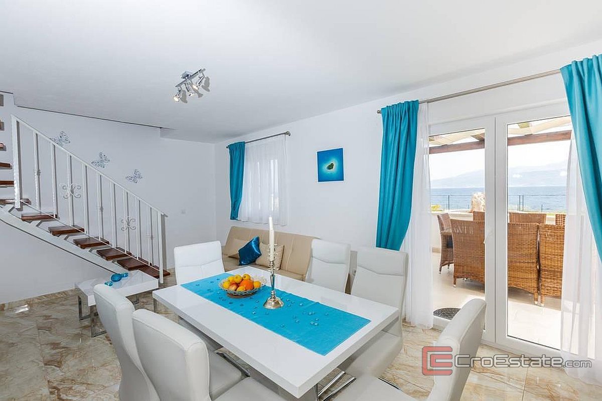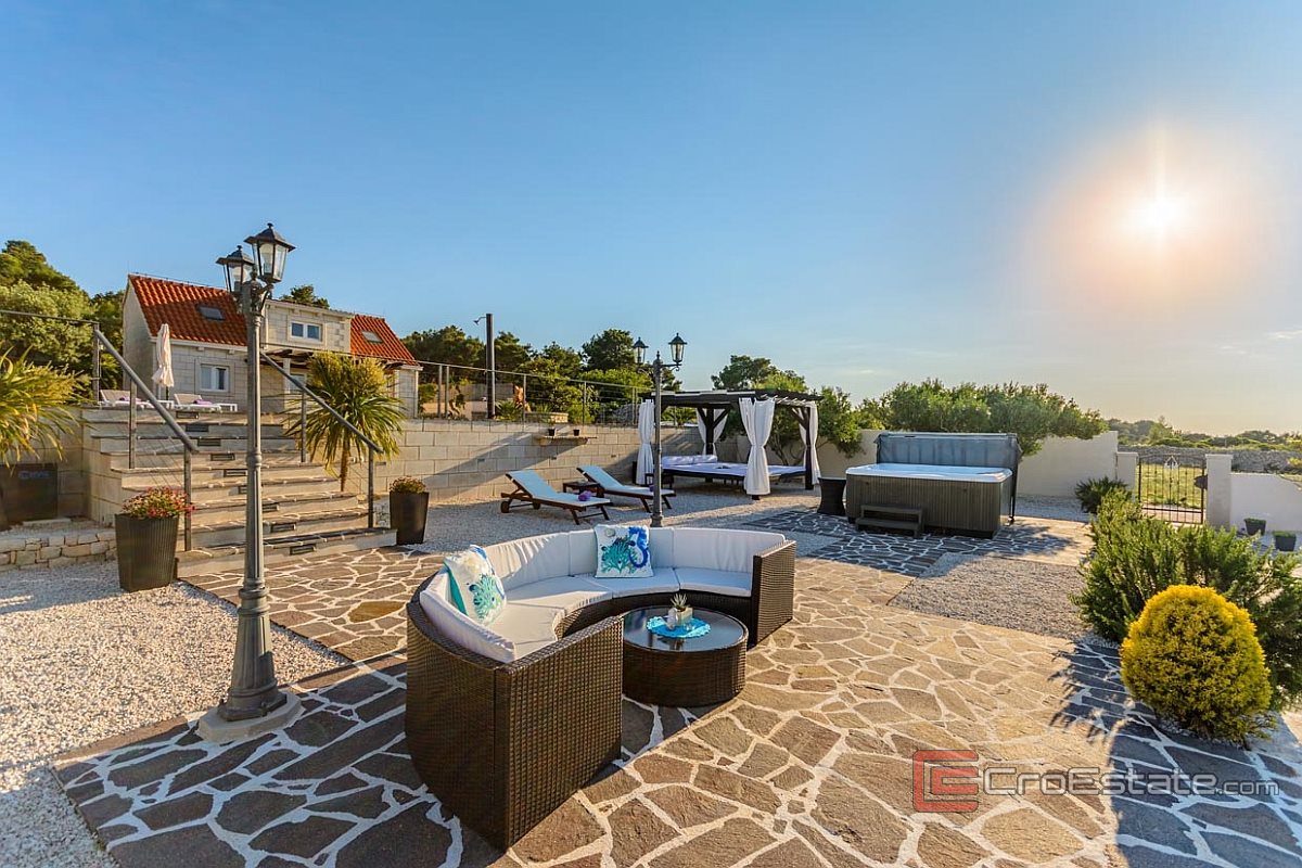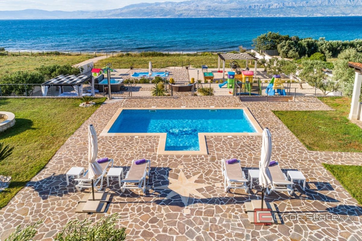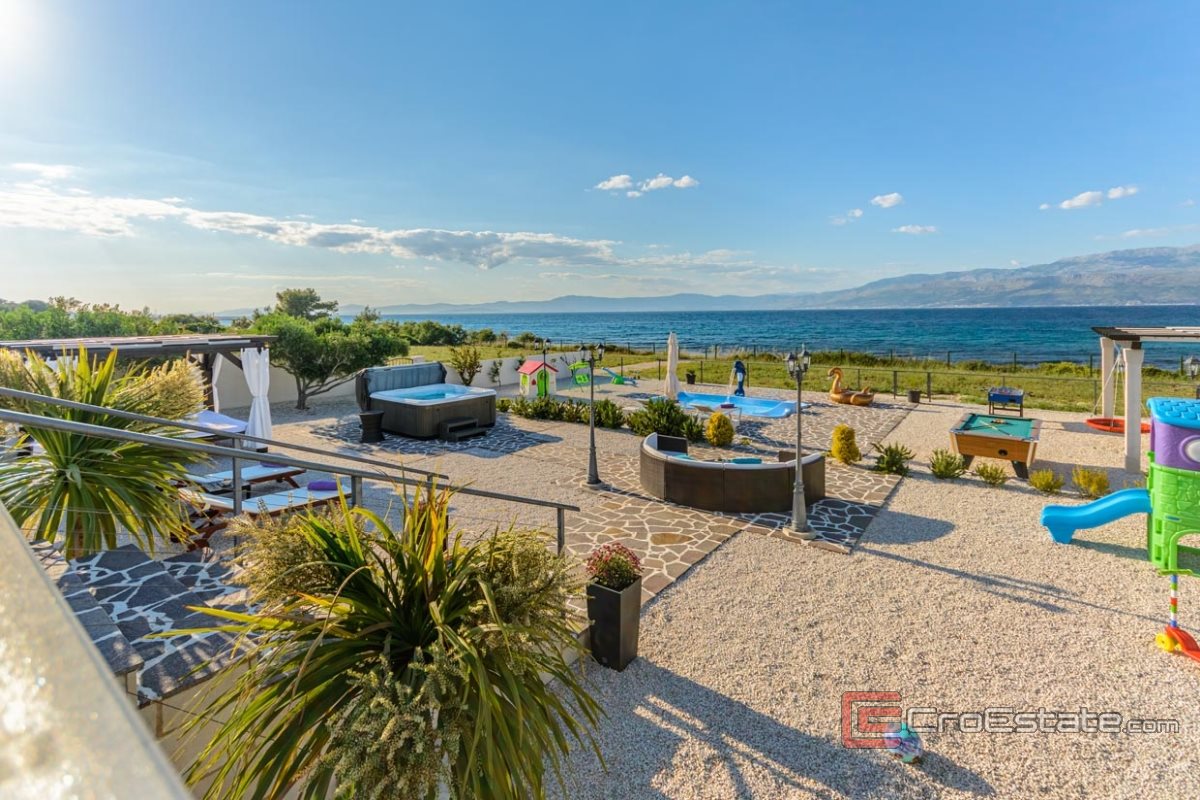 Villa for rent in the first row to the sea located on the island of Brac. The villa has two smaller residential houses. The smaller residential house consists of a fully equipped kitchen with dining area and living room, one bedroom and one bathroom. The larger residential house consists of a fully equipped kitchen with dining area and living room, two bedrooms and two bathrooms. The interior of the villa is decorated and provides comfort. The property is new, completed in 2015.