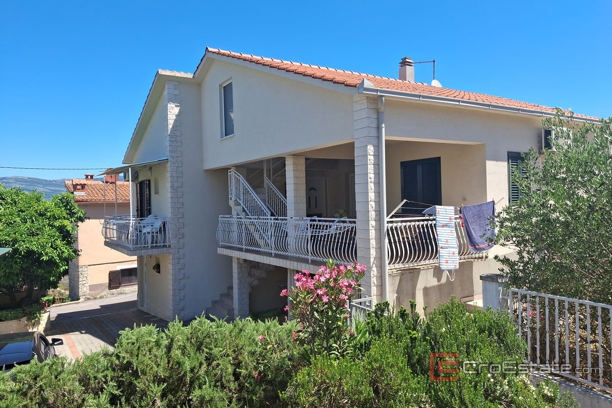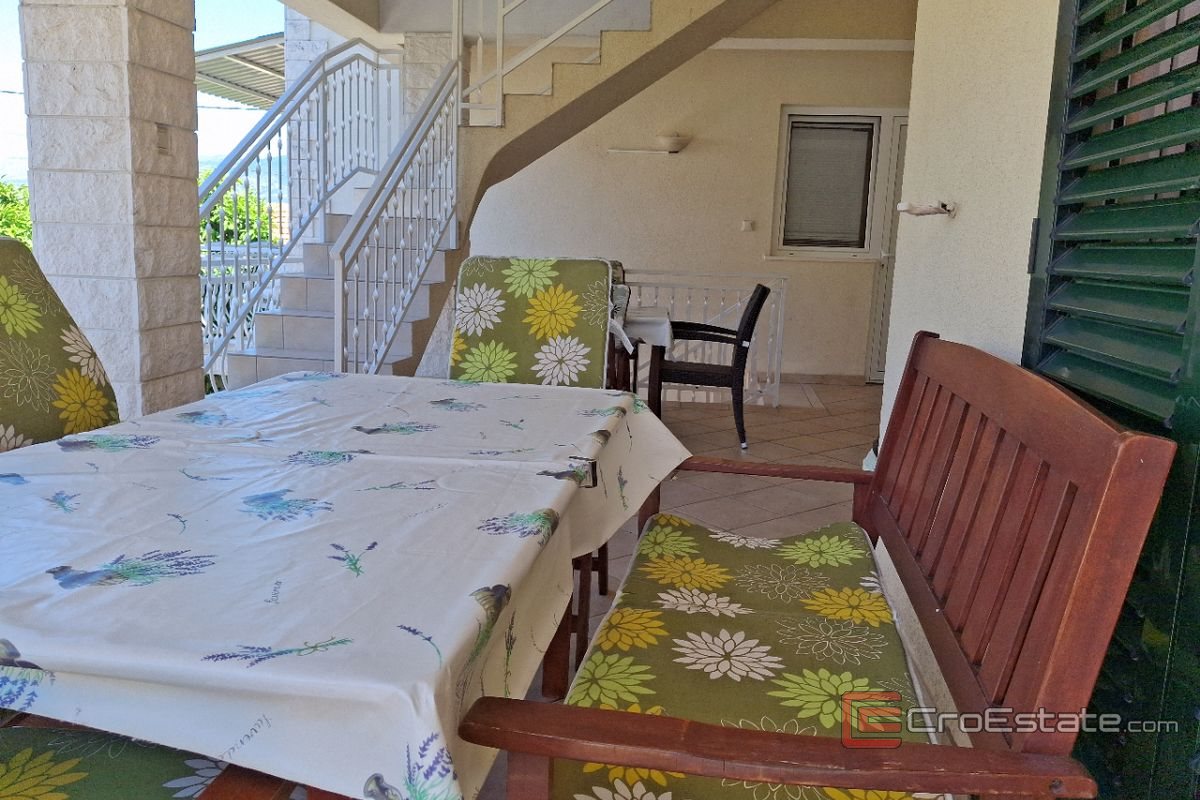The house itself consists of a ground floor and two floors. There are two studio apartments on the ground floor, each with its own room, kitchen and bathroom. The first floor consists of two studio apartments, each with its own room, kitchen and bathroom. Also, on the first floor there is a spacious apartment with two rooms, balcony, kitchen, dining room and bathroom. On the second floor is an unfinished apartment in the attic with a large terrace that offers a beautiful, open view of the sea.