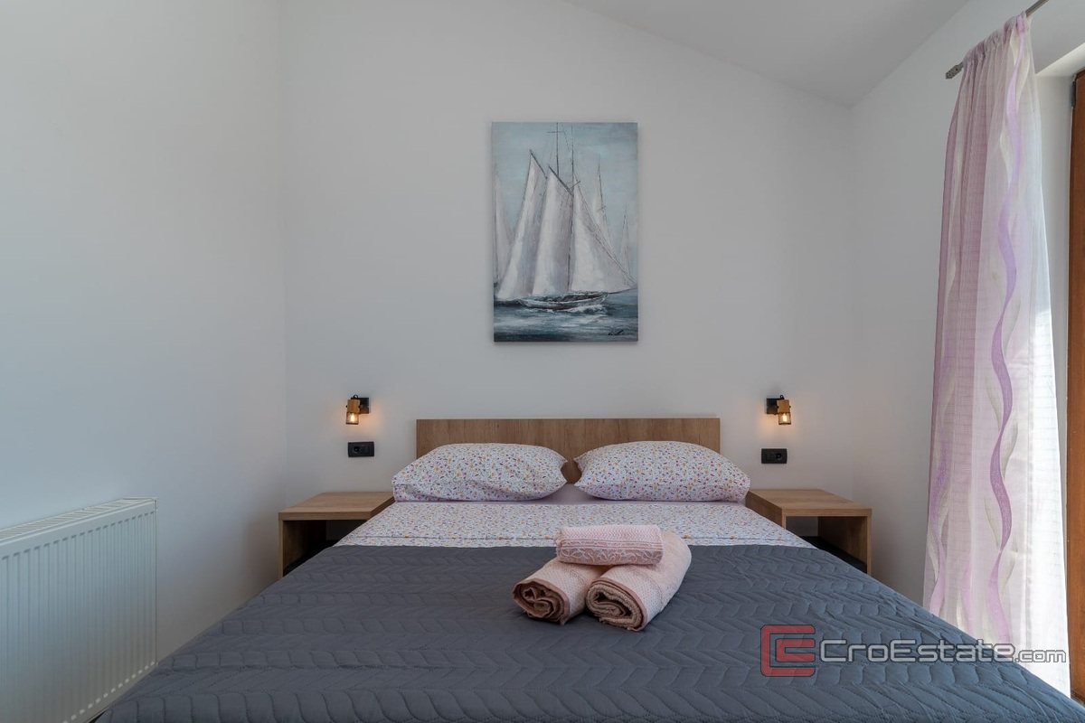 On the upper floor there are three comfortable bedrooms, two of which have access to a spacious terrace with a stunning sea view. In addition to a private bathroom in each bedroom, there is also an additional bathroom, which allows maximum comfort for family or guests.