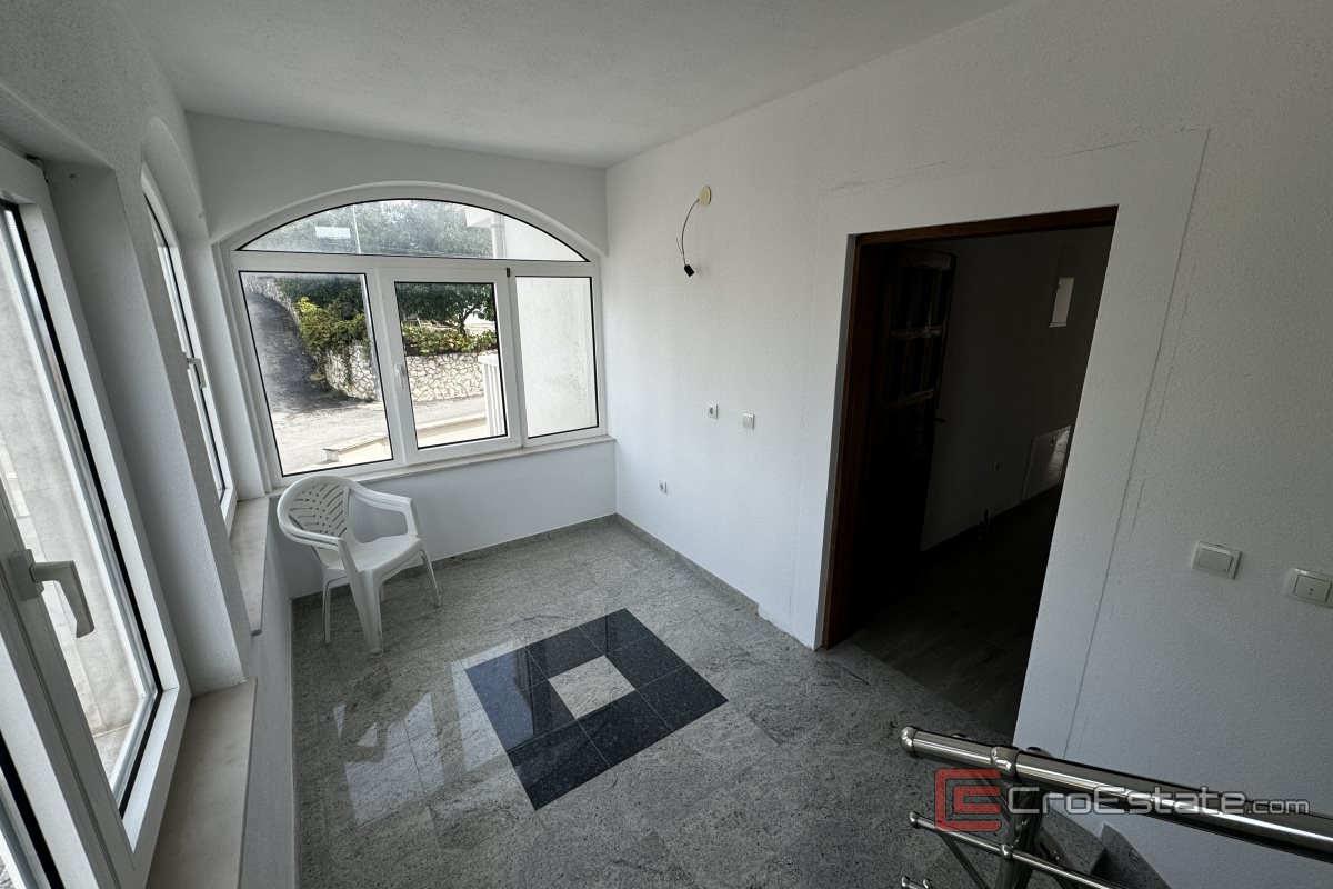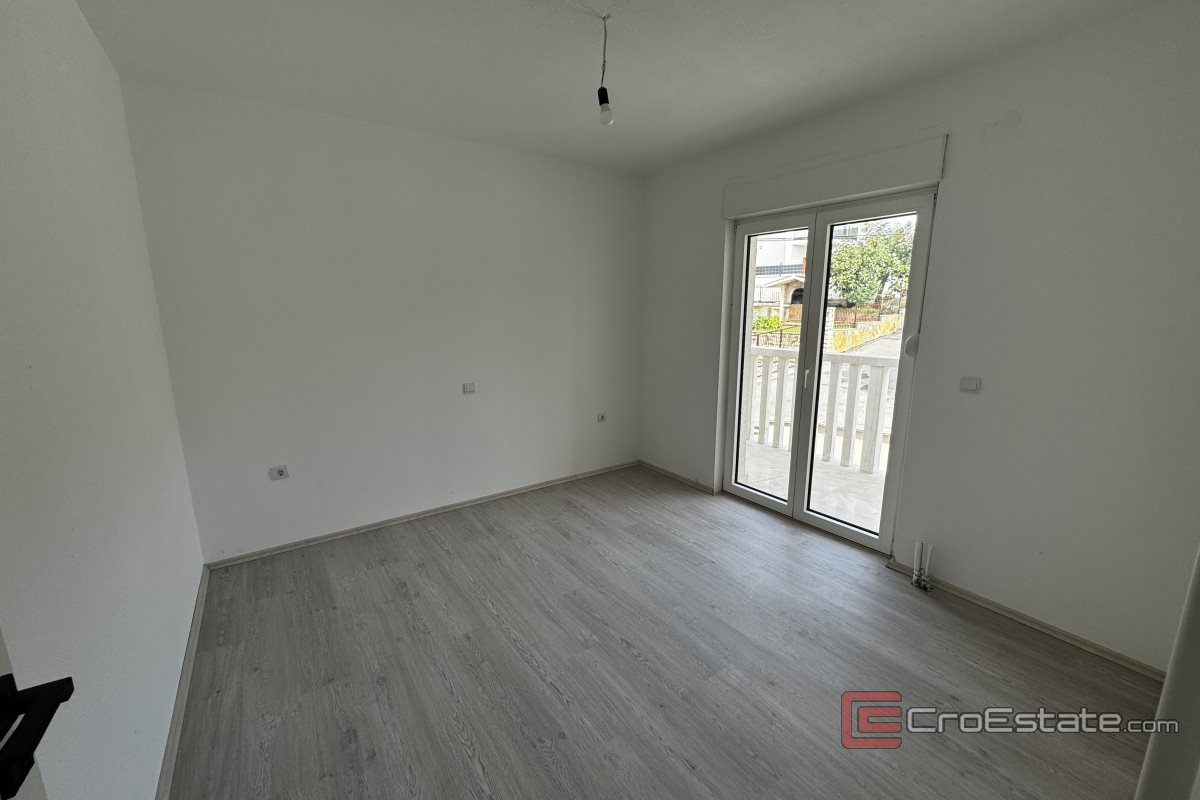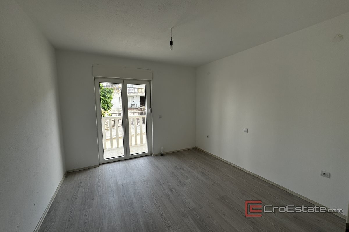This spacious and comfortable three-bedroom apartment is located on the southern side of the island of Čiovo, situated on the first floor of a small residential building. The entrance area leads to bright and airy rooms. The apartment consists of three comfortable bedrooms, perfect for family or guests. Two of the bedrooms have access to their own balcony, while the third bedroom opens onto a large terrace of 48 m², ideal for relaxation or social gatherings. The kitchen is connected to the dining area and the living room, which also has access to a balcony offering a beautiful sea view.