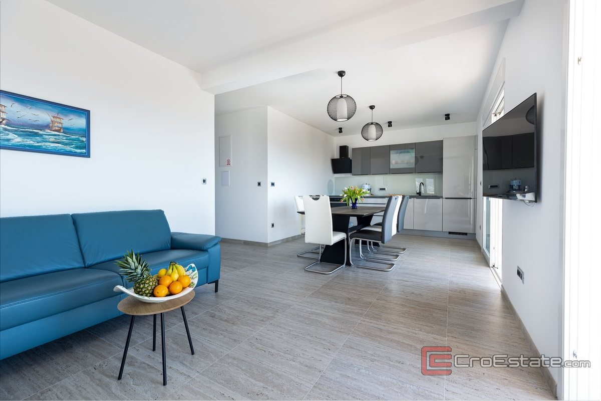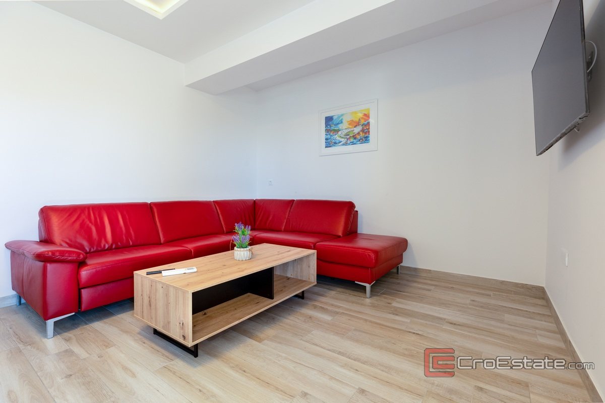 In a quiet and attractive part of Kaštela, this magnificent, modernly equipped villa is located, which combines top design, luxurious facilities and functionality. With its 300 m² of living space on a 500 m² plot, this property is ideal for both private enjoyment and commercial rental. Only 900 meters from the sea, the villa offers an impressive combination of comfort, elegance and practicality.