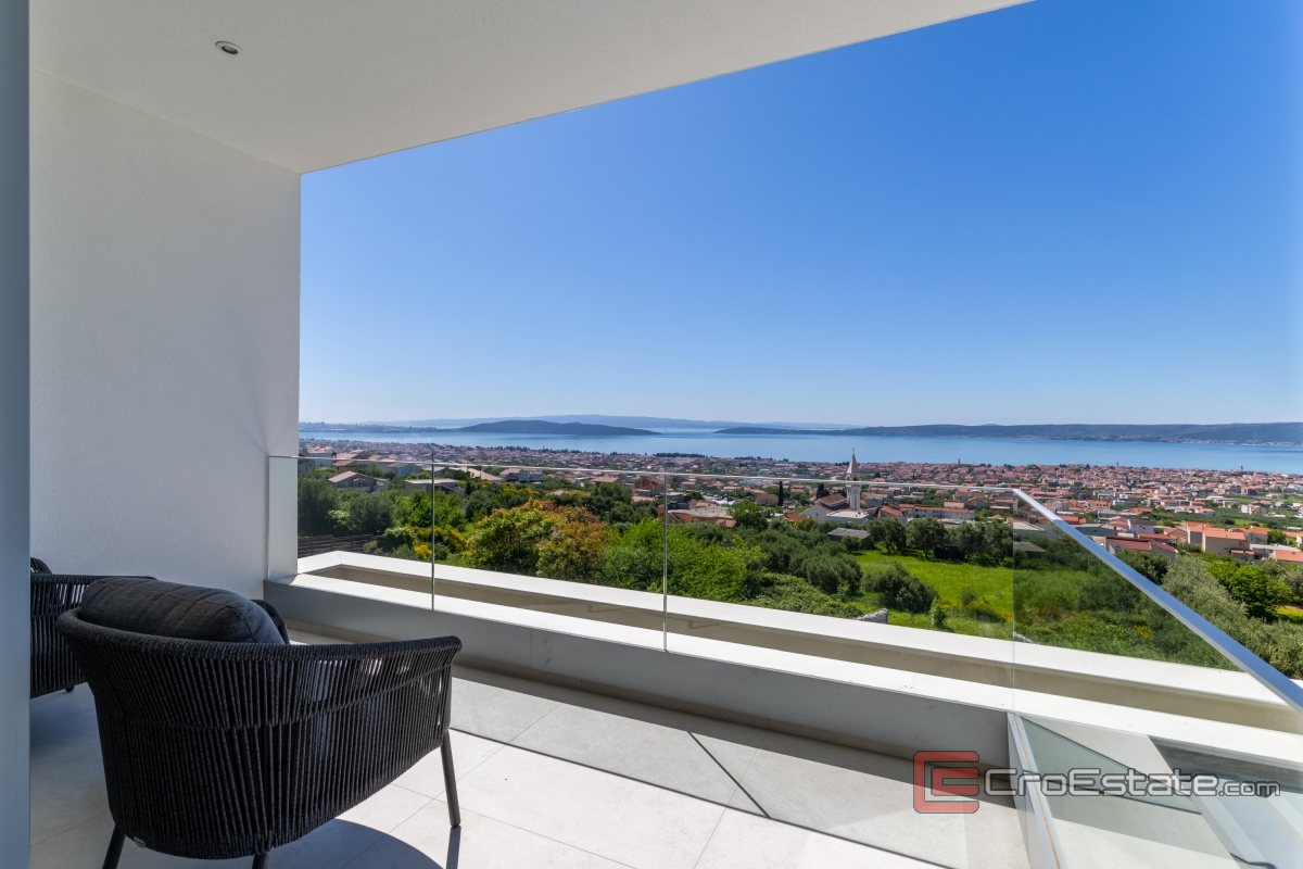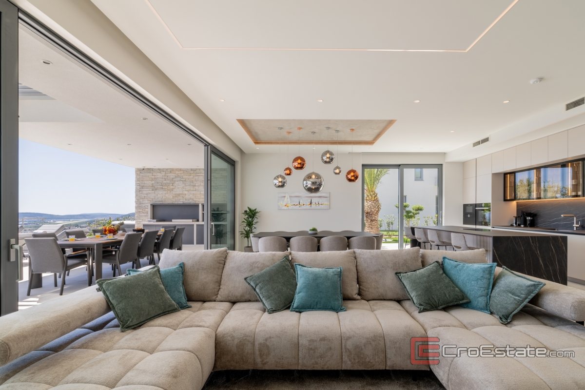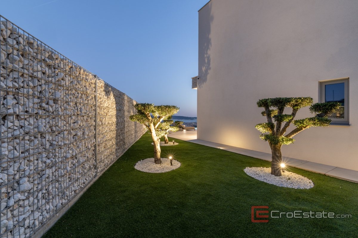 In an exceptionally attractive location in the picturesque coastal town of Kaštela, this magnificent, modernly designed villa is located, a true oasis of luxury and comfort. It is an impeccably designed new building, perfectly integrated into the Mediterranean landscape, with enchanting, uninterrupted panoramic views of the sea, coast and idyllic Dalmatian islands.