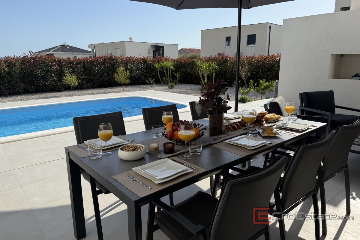 Modern new building with a sea view. For sale is a house with a swimming pool with a living area of 257 m2, located on a plot of land with a total area of 938 m2 in Kaštela. The house is newly built and is equipped with modern, quality furniture that is included in the price of the house. This modern new building was conceived as a house for vacation and family life due to the proximity of all the necessary facilities for a pleasant life and vacation. The house consists of two floors. On the ground floor there is a kitchen with a dining room, a living room and a room with a bathroom and toilet, as well as a laundry room. On the first floor there are two rooms with a bathroom and a terrace with a beautiful view of the sea. The house is equipped with a swimming pool, barbecue, parking for 6 cars, air conditioning...