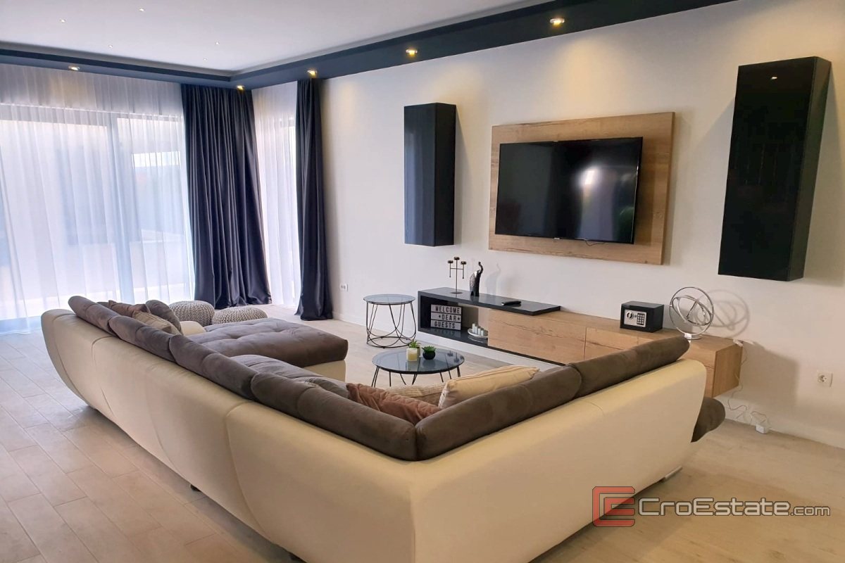 For sale is a newly built villa with pool in the area of Kastela. It was built on a plot of land with a total area of 750 m2, and the surrounding houses are also newer construction, so the neighborhood will look quite neat.