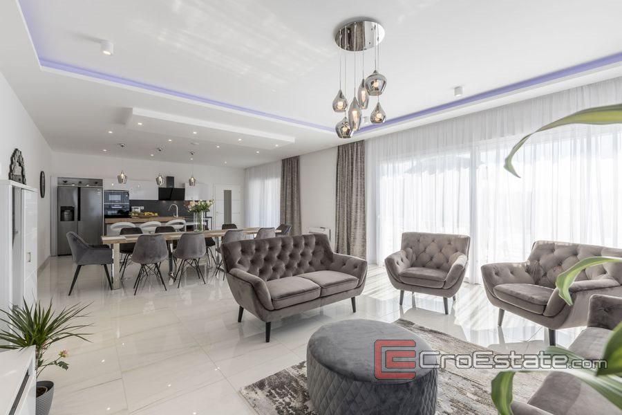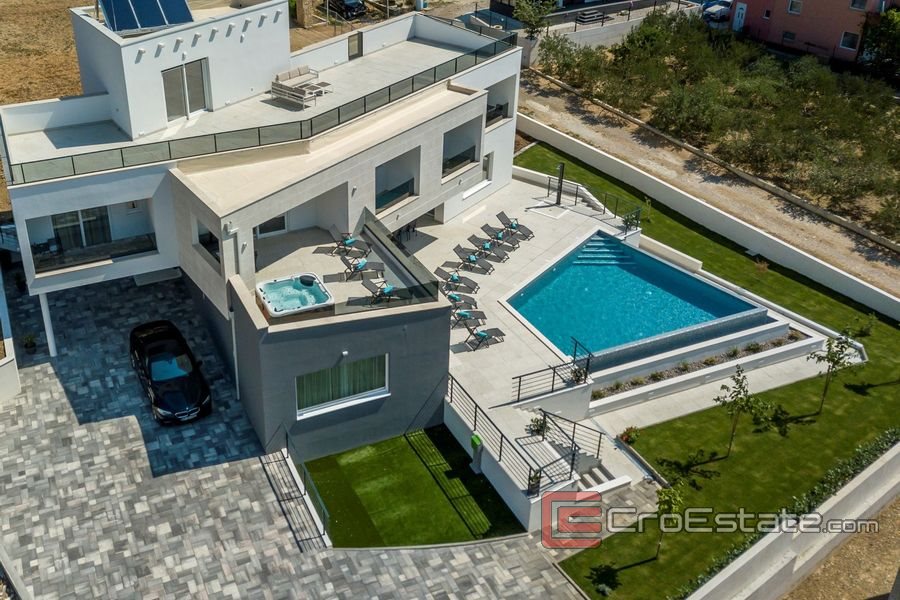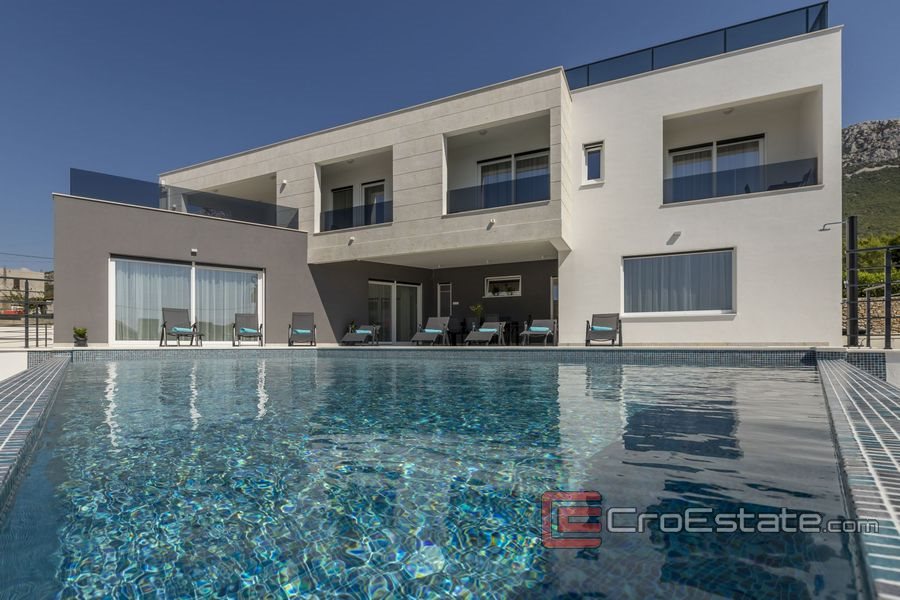 Luxury designed villa with pool and sea view positioned in a quiet place in Kastel Sucurac. The villa is on a plot of 1703 m2, total living area of 350 m2 and spreads over 4 floors.