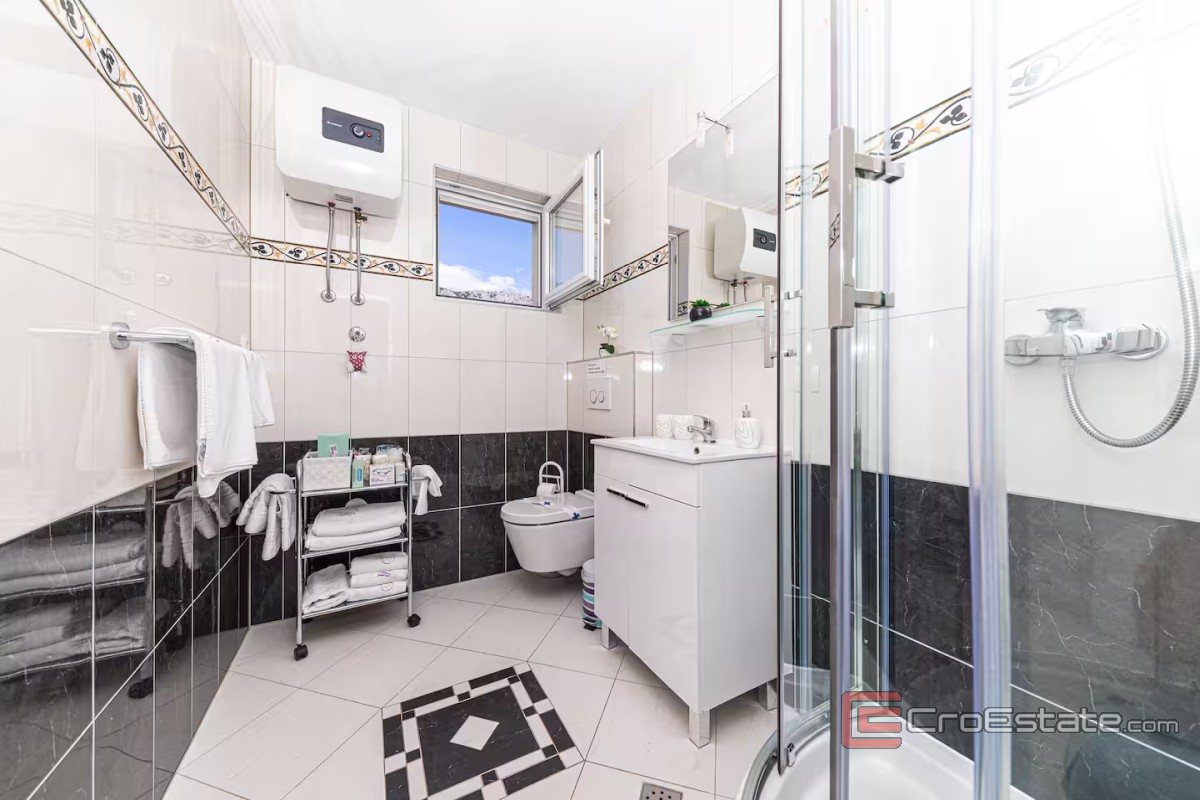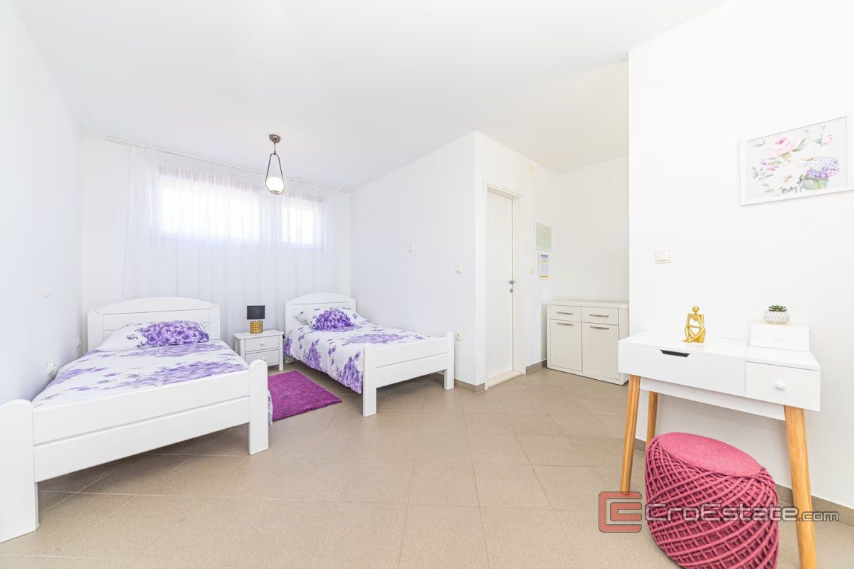 This impressive, spacious and attractive villa is located in the first row to the sea, which stands out for its privacy, exceptional potential and authentic Mediterranean atmosphere. The property is located on a plot of 740 m², while the total living area is 485 m², distributed over a basement and three above-ground floors. Thanks to its exceptional location right by the sea, the villa offers unobstructed panoramic views.