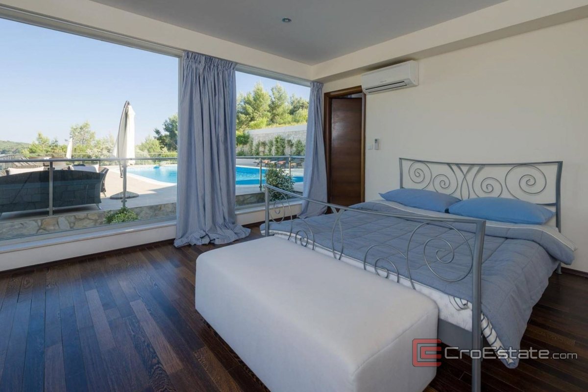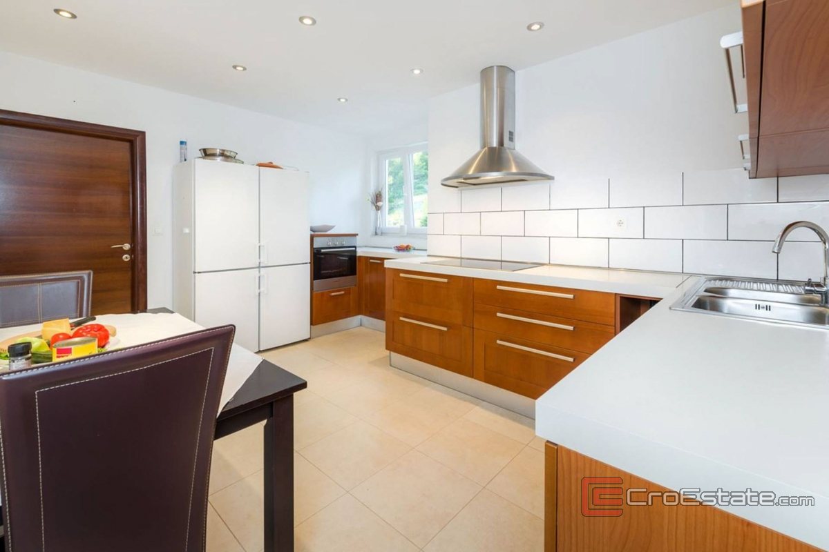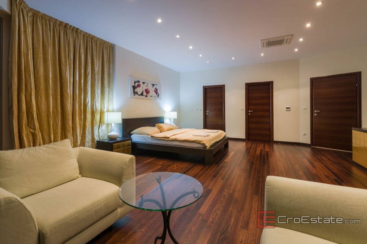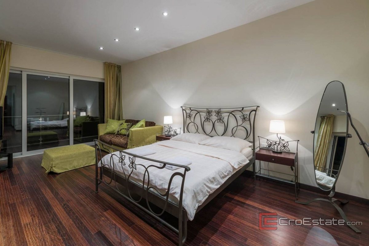 Upstairs, there are two luxurious master bedrooms with panoramic sea views, private bathrooms and walk-in closets, and three additional bedrooms – each with its own bathroom. All bathrooms are equipped with an underfloor heating system that ensures comfort all year round.