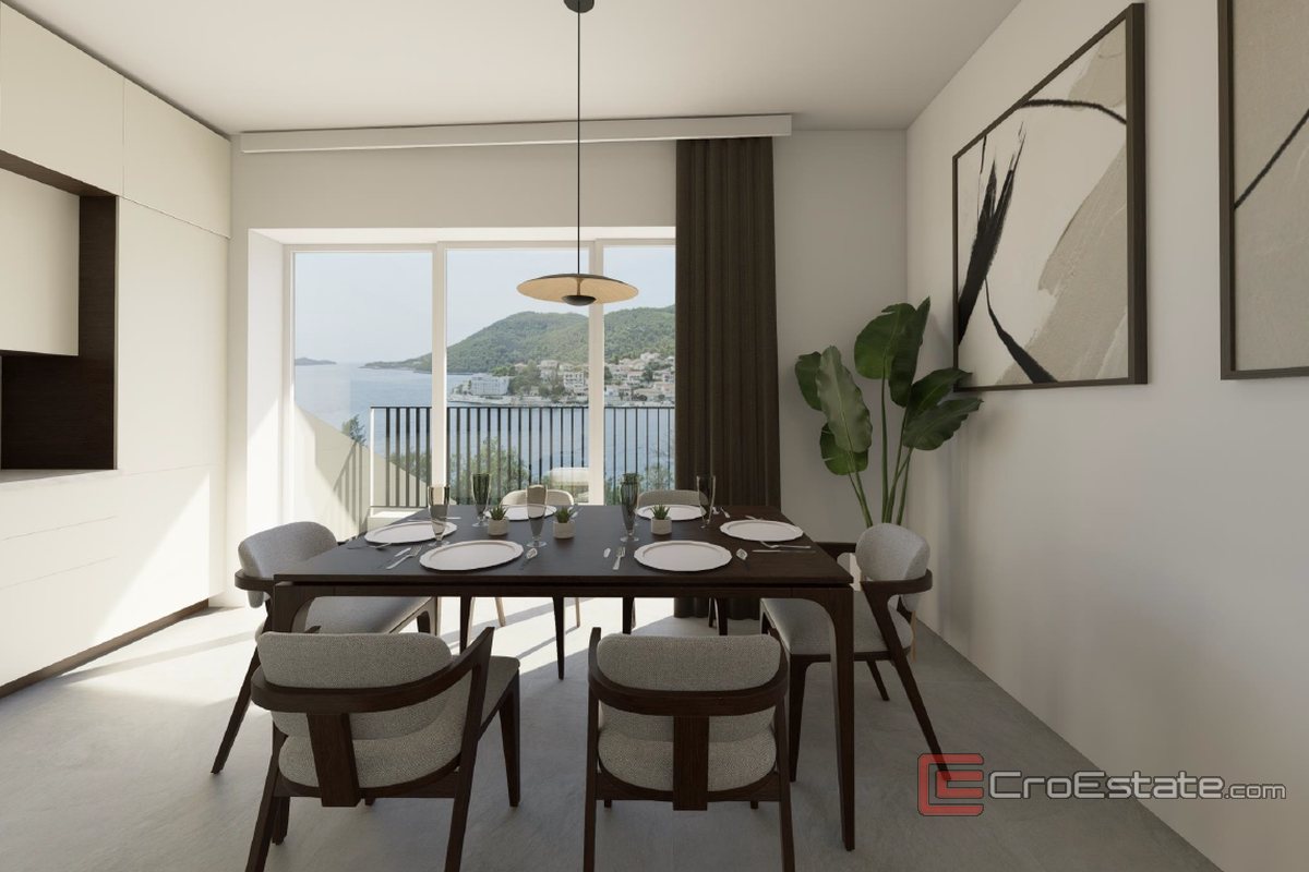 In an attractive and exceptionally quiet location on the south side of the island of Korčula, only thirty meters from the sea, this elegant apartment in a modern new building is located.