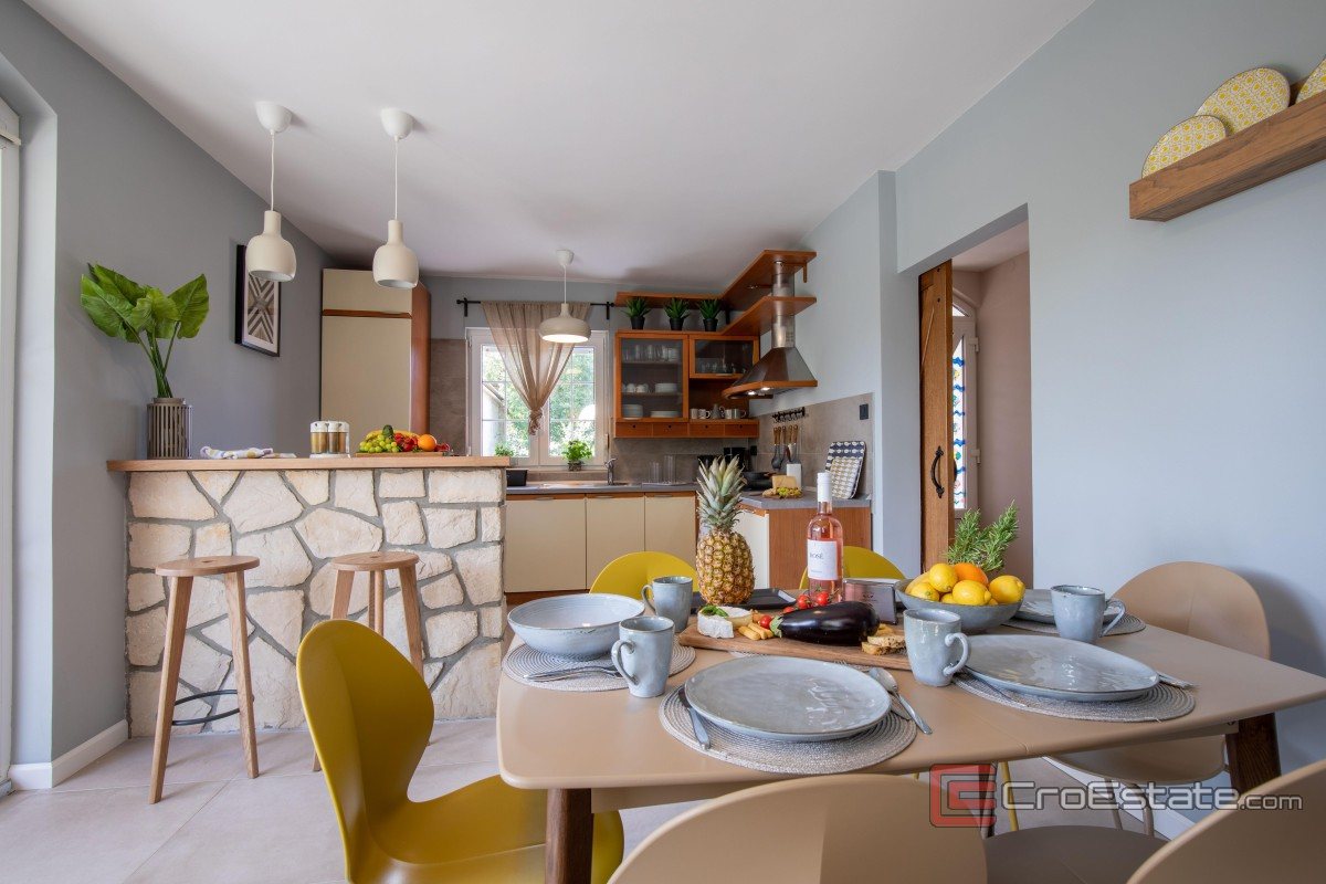 In an attractive and quiet location in the Soline bay, just 90 meters from the sea, a detached house with Mediterranean characteristics is for sale. The living area of 230 m² is spread over two floors.