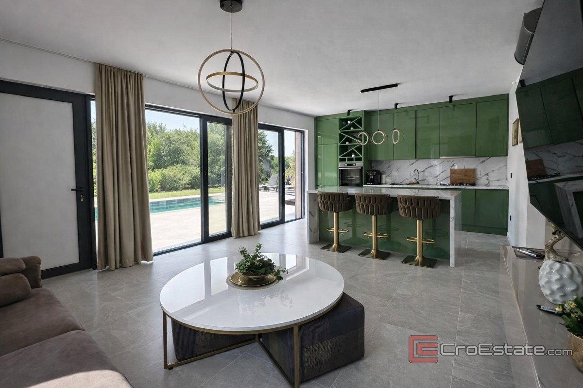 The villa is sold fully furnished, with underfloor heating and air conditioning in all rooms. The courtyard is functionally arranged and offers several parking spaces, while in the center of the courtyard there is a 27 m² swimming pool with a sunbathing area. The automatic pool maintenance system allows for easy use and minimal maintenance.
