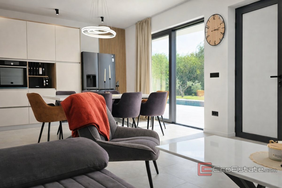 In a quiet part of Labin, there is a modernly designed villa with a living area of 176 m², located on a plot of 792 m². The property is organized as two completely independent residential units, which provides the future owner with flexibility of use and excellent investment potential.