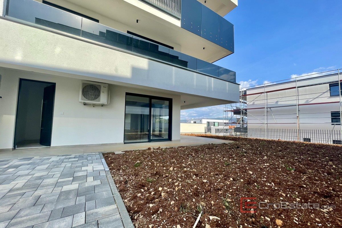 Apartment for sale in the town of Krk, area 65 m2. It consists of a hallway, living room with kitchen and dining room, two bedrooms, bathroom, separate toilet and terrace (21m2) which has access to the adjoining garden (116m2). The building was built to modern standards using quality materials. The apartment is equipped with air conditioning, heat pump, aluminum joinery, parquet and high-class ceramics. The apartment comes with one parking space. The distance from the sea and the beach is approximately 600 meters, which makes this property suitable for year-round living or tourist rental.