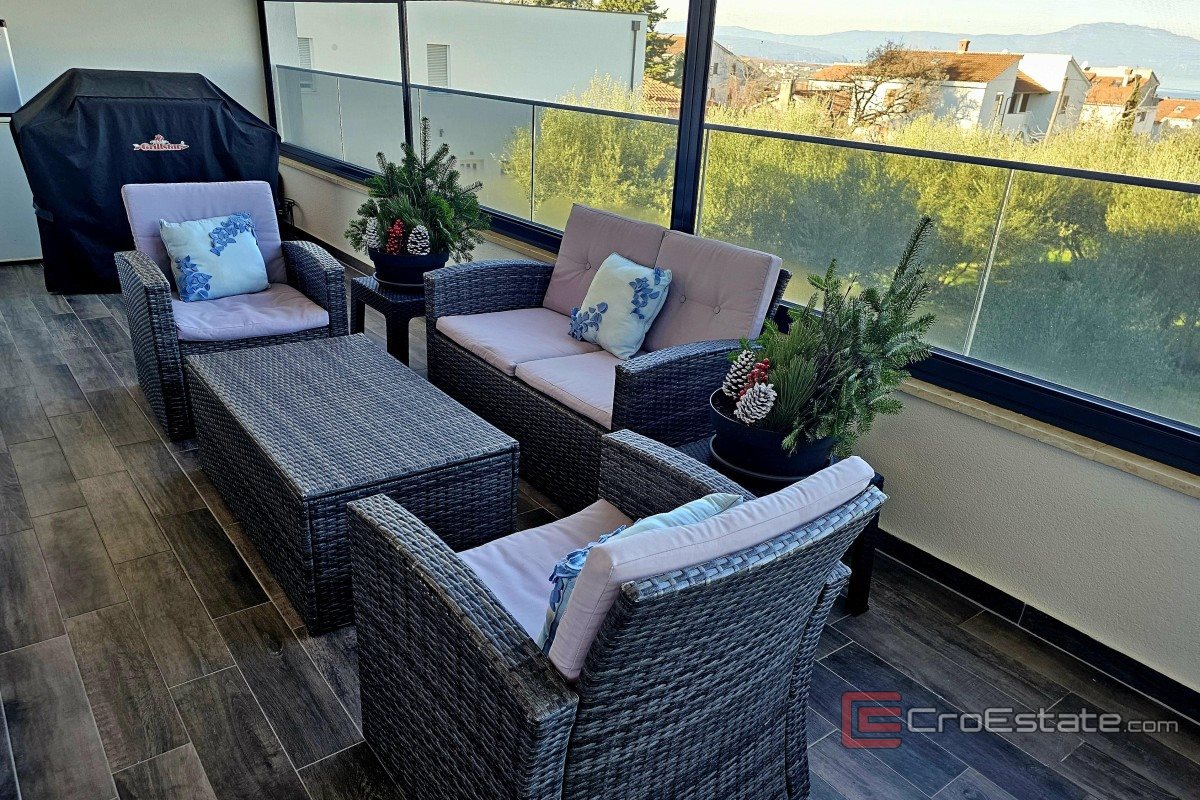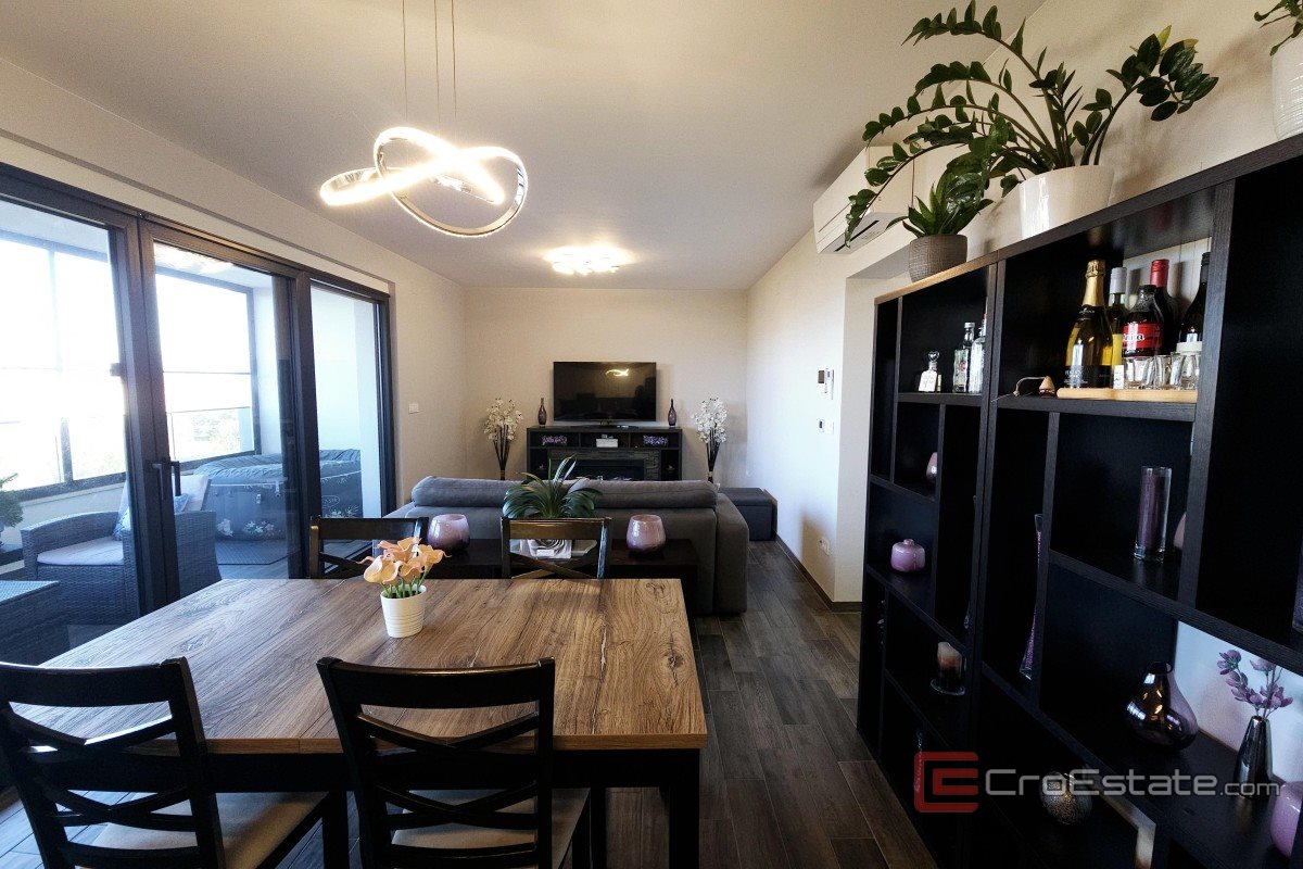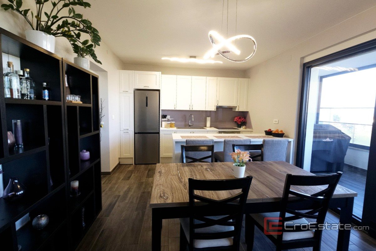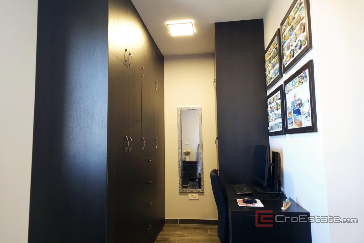 In a quiet part of Malinska is located this functional and comfortable two-bedroom apartment, ideal for everyday life or vacation. The apartment of 67 m² is located on the 1st floor and consists of an entrance hall, storage room, kitchen with dining room, living room, two bedrooms and a bathroom. The layout of the rooms is designed to provide maximum practicality and comfort. From the dining room there is access to a spacious covered terrace of 19 m², which offers a partial view of the sea and is a perfect place to relax throughout the year. The apartment is equipped with underfloor heating throughout the rooms, while three air conditioners provide a comfortable temperature in the summer months. The additional value is the accompanying garden of 10 m² and a parking space, which makes this property a practical and complete solution for living or investment.